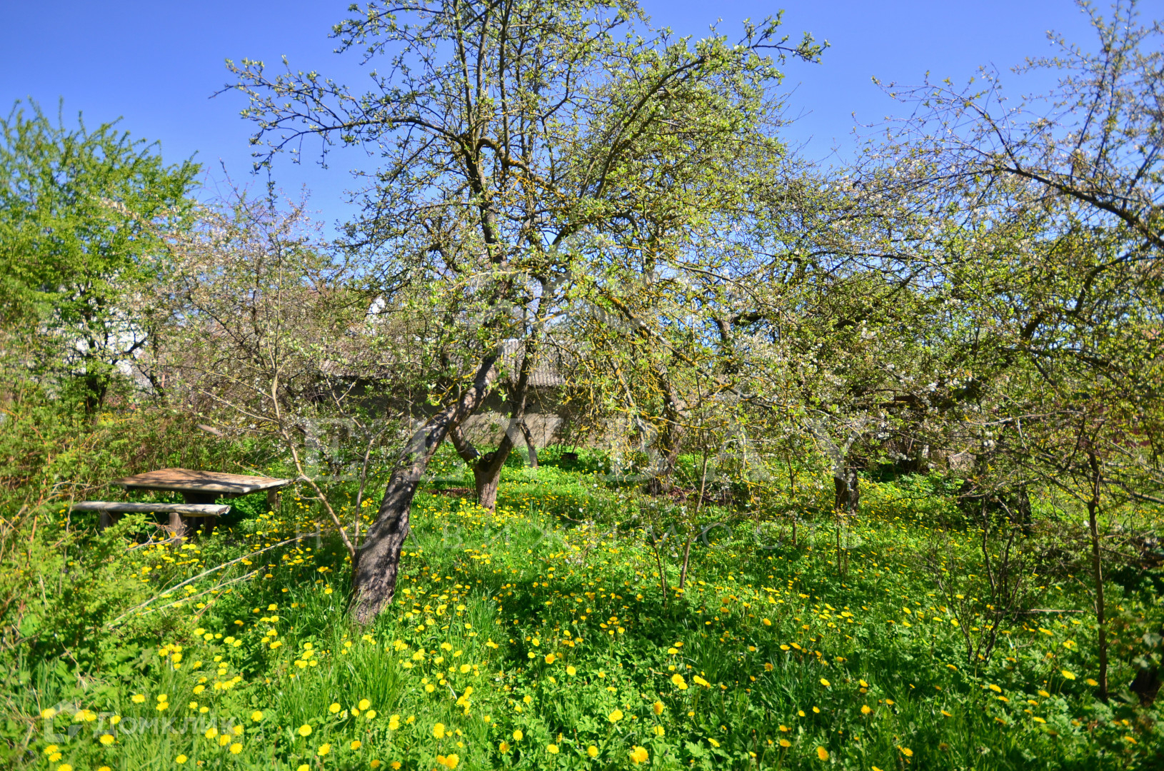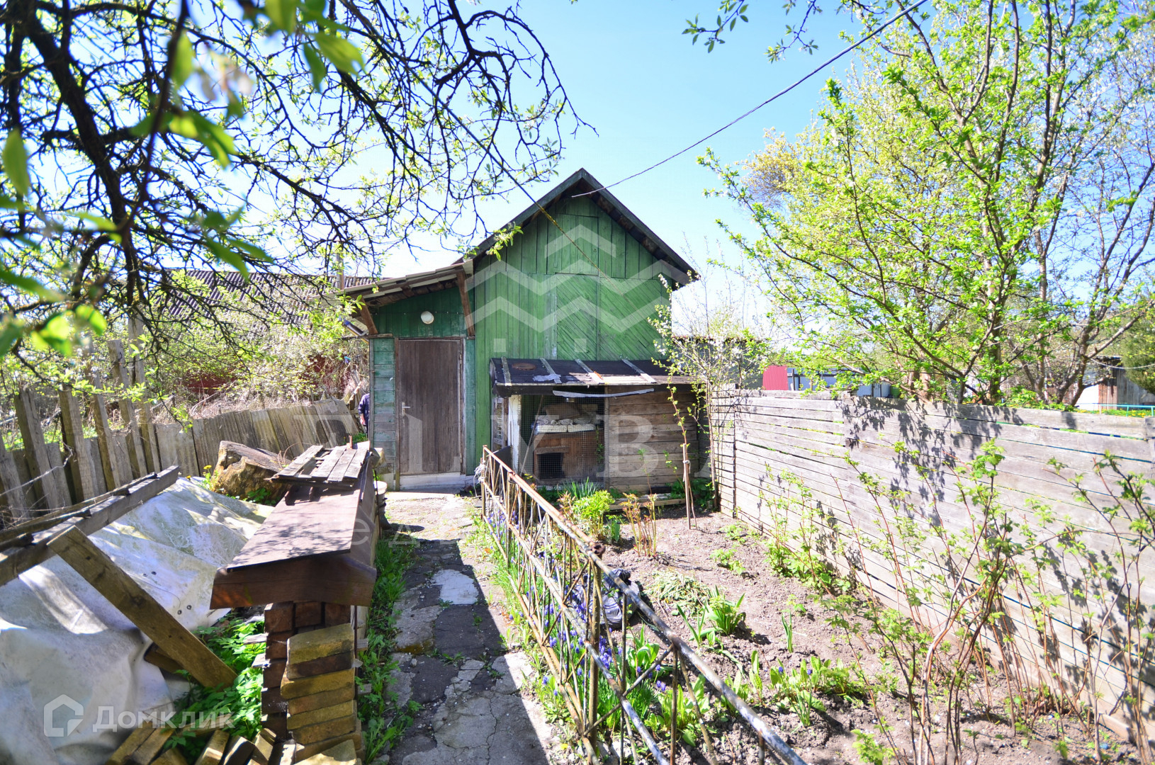 На территории находится участок 3 сотки с плодовыми деревьями и зоной отдыха.