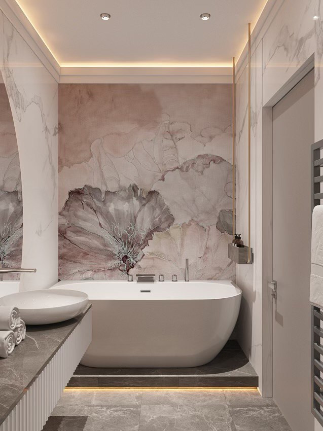 В квартиру закуплена итальянская и испанская сантехника, ванна из натурального камня, установлены двери скрытого монтажа, закуплены плинтуса, фреска + все розетки, выключатели в Interior room, оплачен натяжной потолок + светильники и тд. Выложена вся плитка по квартире, проведена вся электрика с отдельным новым электрощитком и доступом для каждой комнаты и света, подготовлены все стены полностью шпаклевкой, сделаны откосы и тд.
