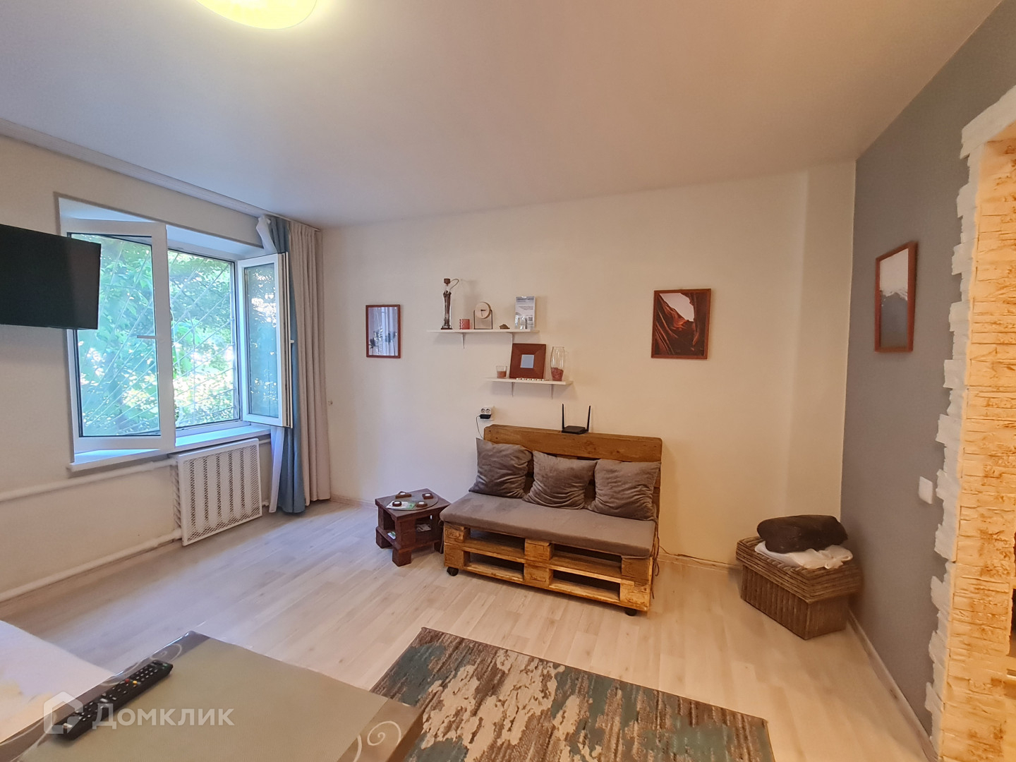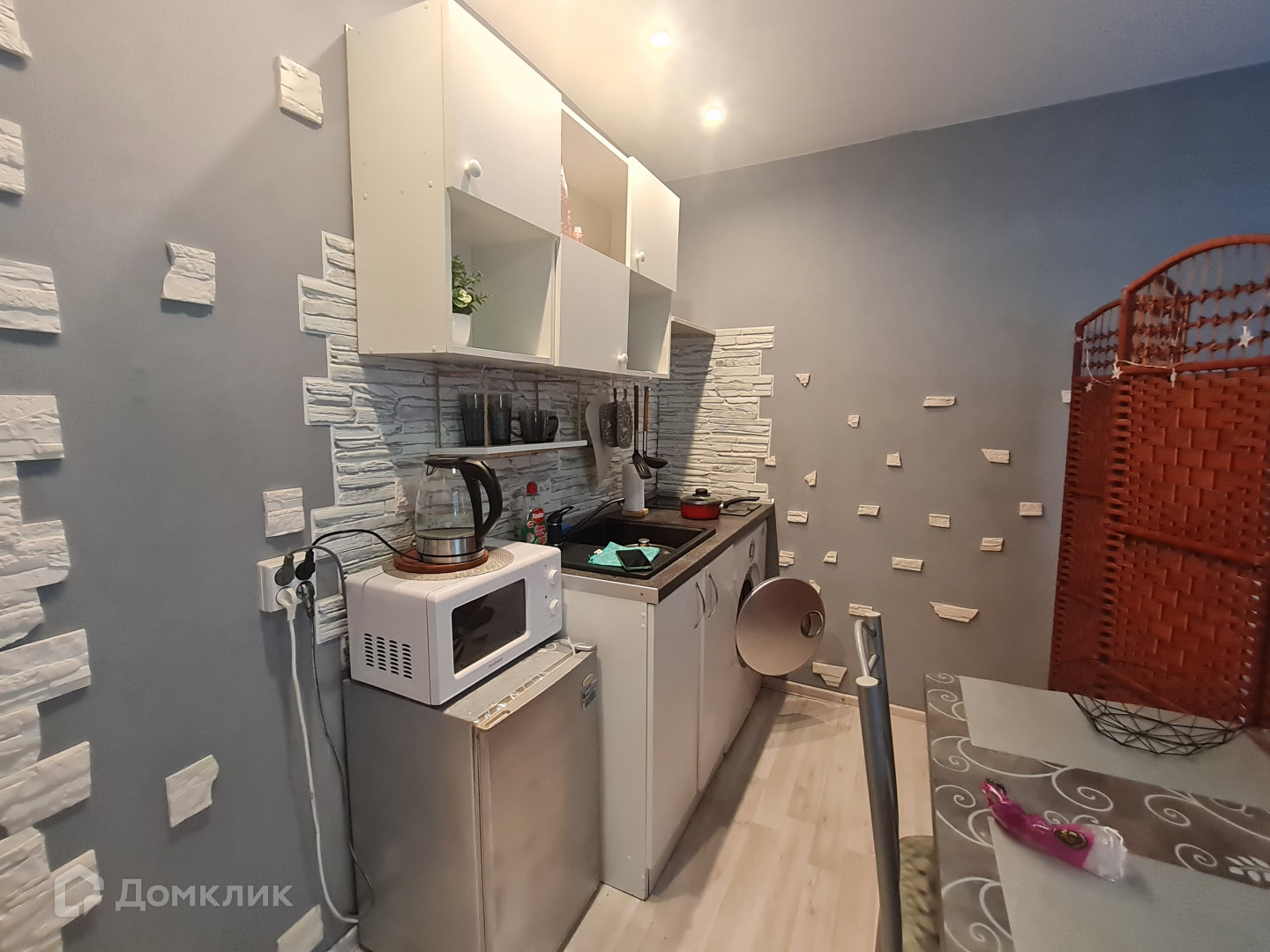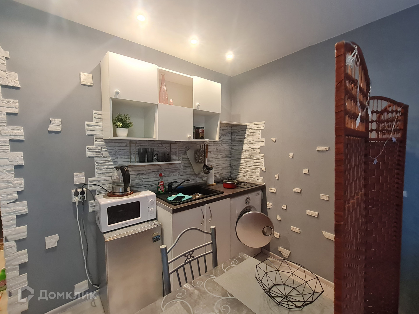 Арт. 49740863 Малогабаритная уютная квартира с выделенной кухонной зоной на площади жилой комнаты. Рядом с домом расположен рынок, магазин "Виктория".