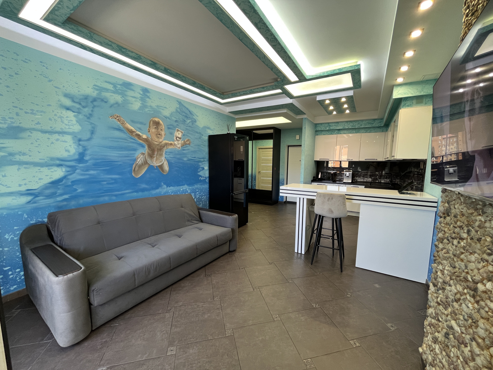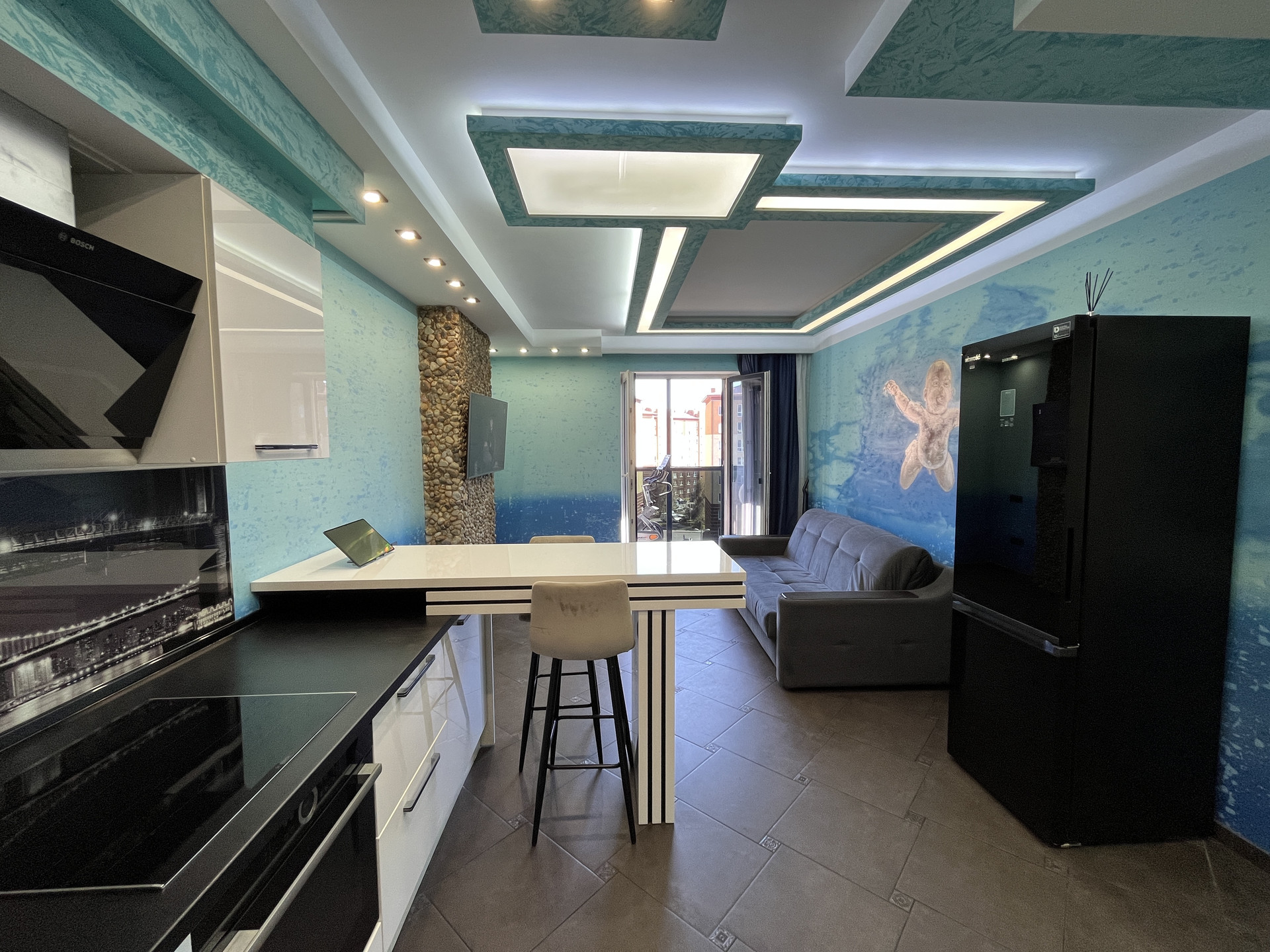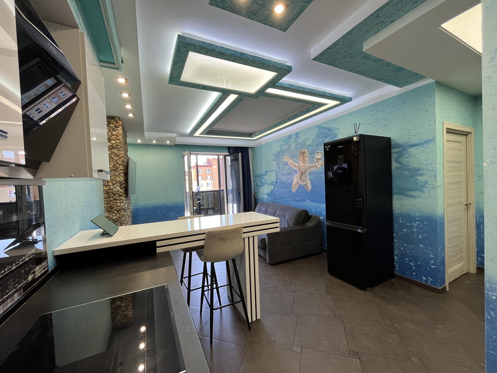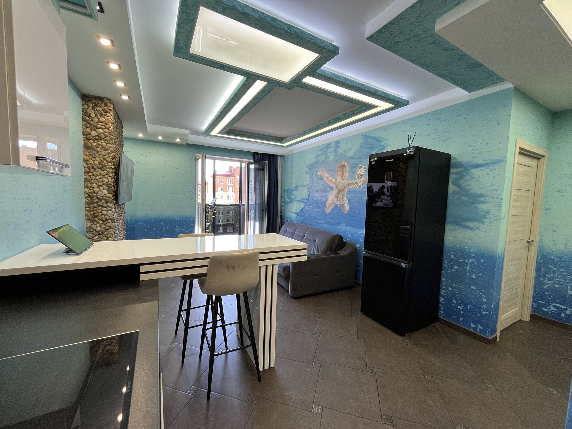 Квартира расположена в Ленинградском районе в жилом комплексе Цветной бульвар. Рядом супермаркет, школа 58, 2 детских сада. 15 минут ходьбы до Верхнего озера. До Балтийского моря 20 минут на машине. В квартире теплые полы (включая застекленный балкон).