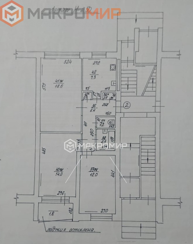 Комнаты, площадью – 18,6 м², 14,0 м² и 12,0 м²;
