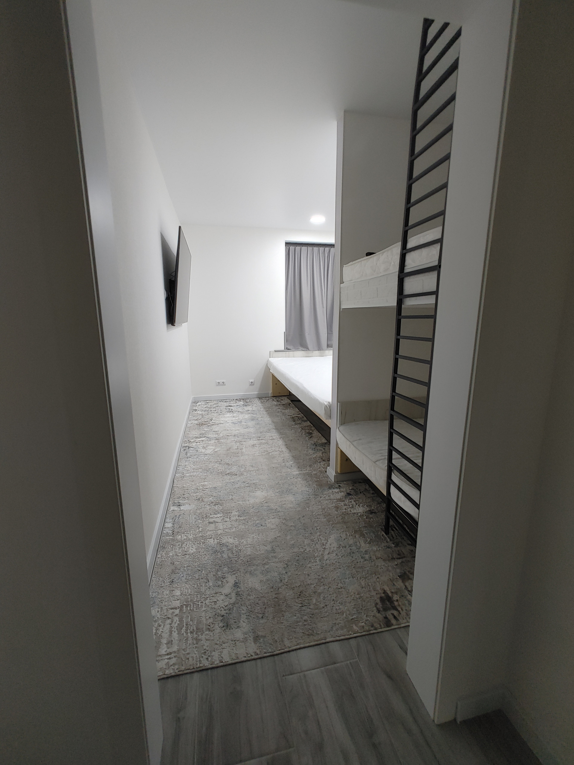 Однокомнатная квартира с автономным отоплением, общей площадью 37м2. Предусмотрена для проживания семьи с 2 детьми, для каждого из которых есть своя мини-комната с индивидуальным освещением.