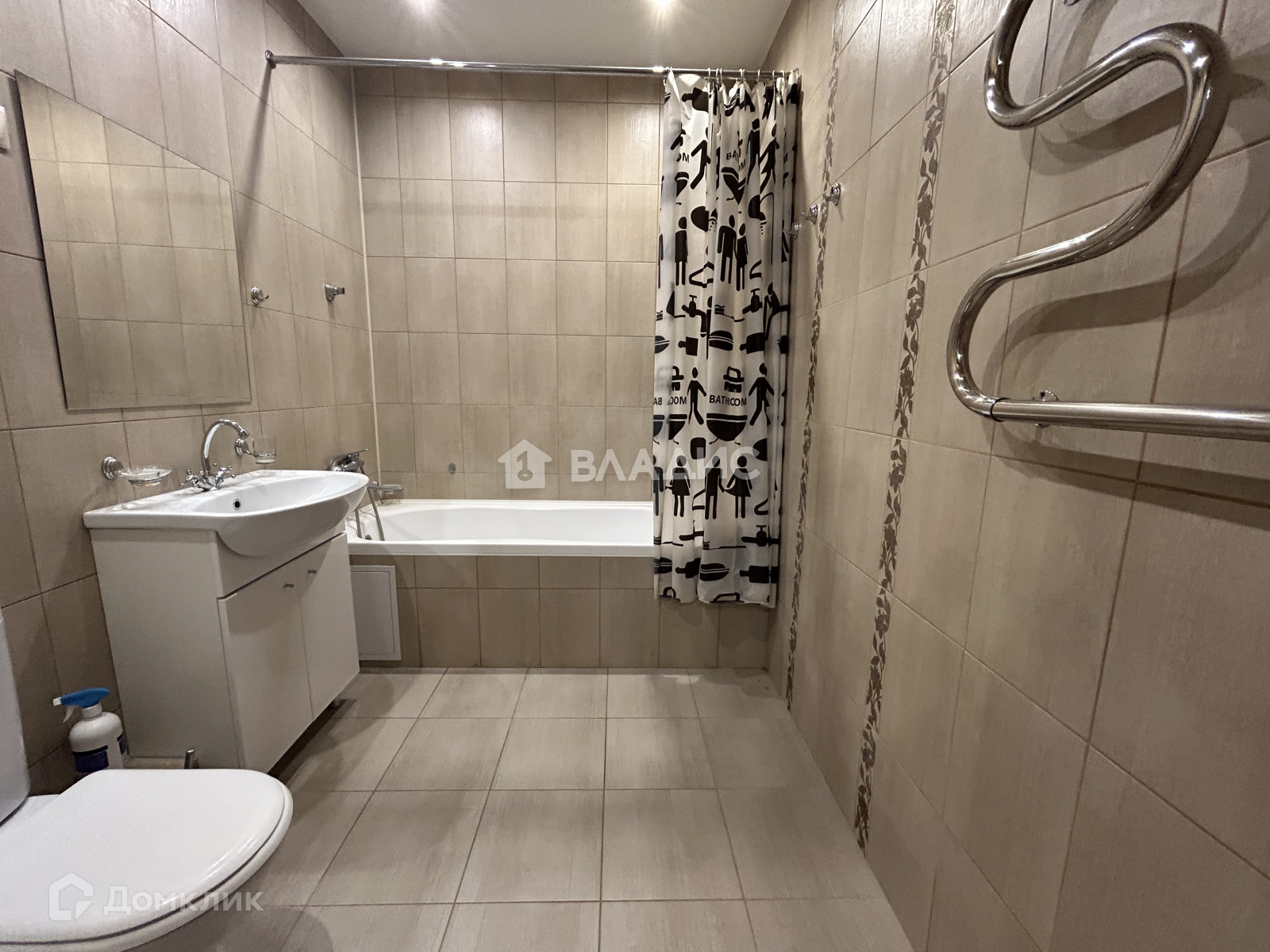 Санузел - 4,1 м2, совмещен. Стандартная ванна, вмещает в себя стиральную машину, тумбу с умывальником, и унитаз.