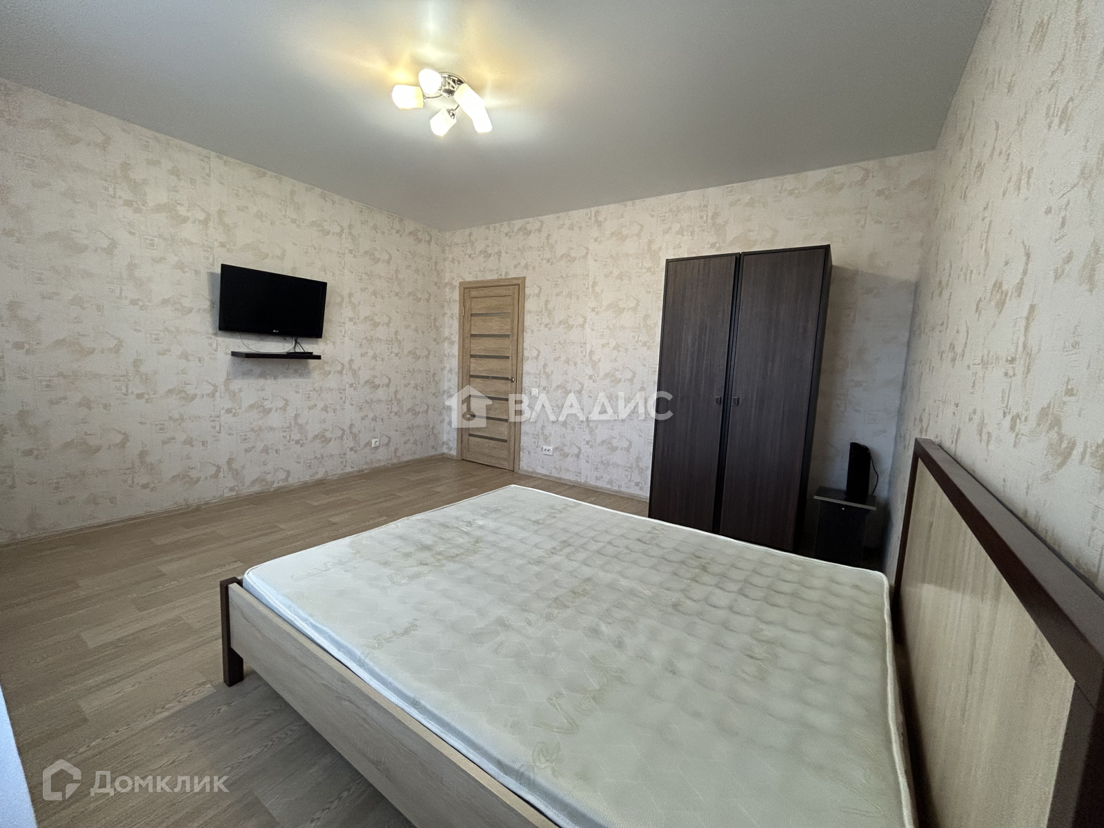 На данный момент комната укомплектована двуспальной кроватью .