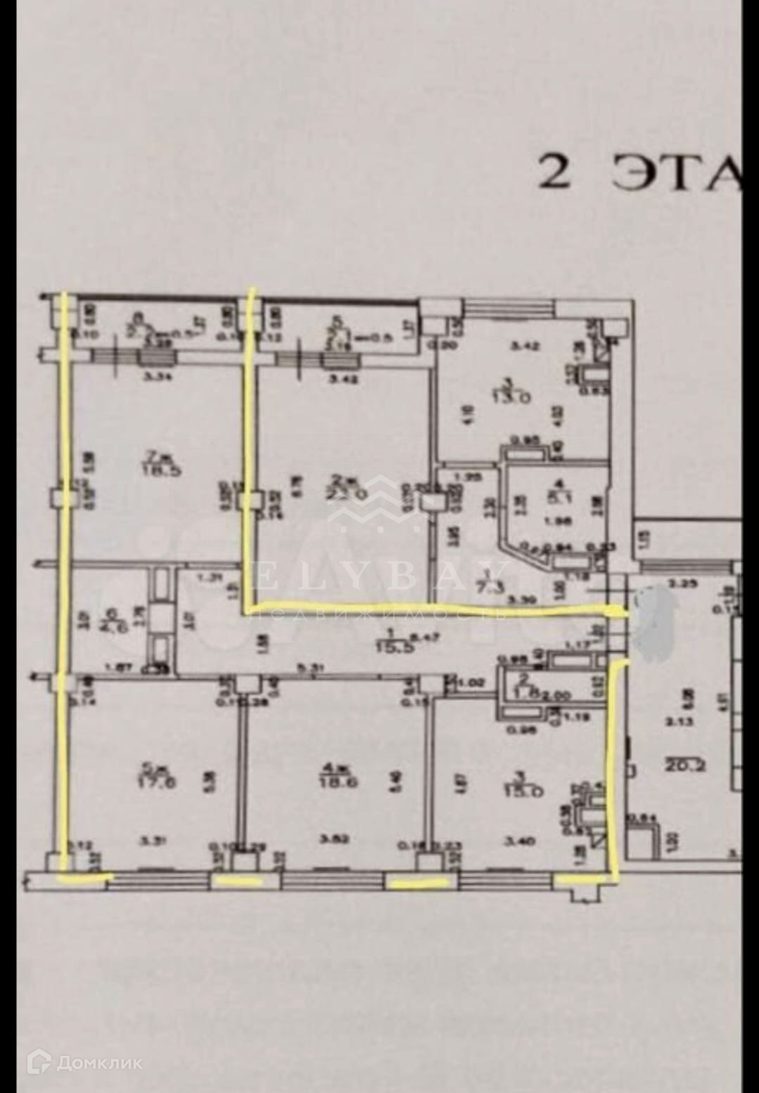 Комнаты: 18,6м2; 18,5м2; 17,6м2.