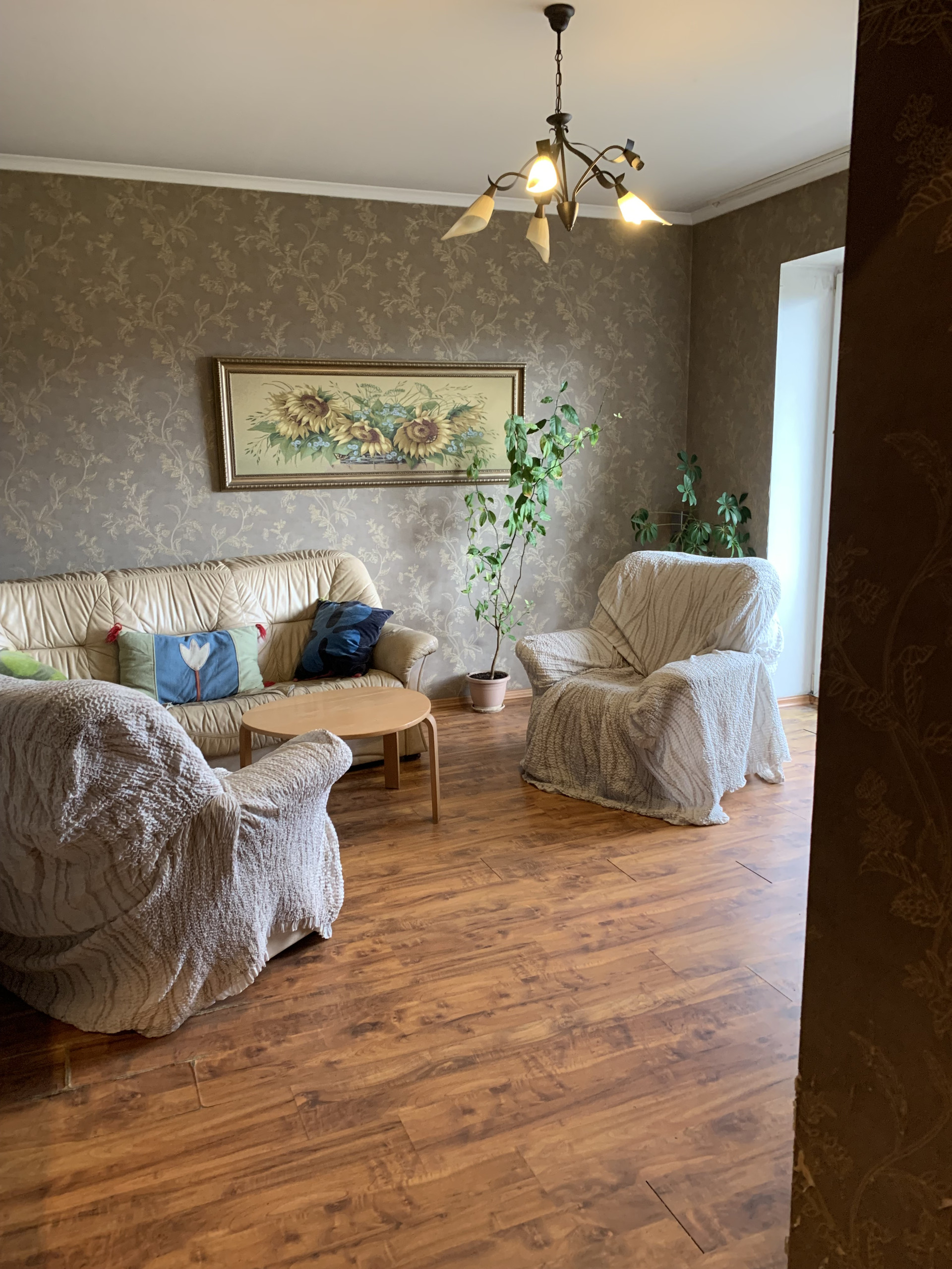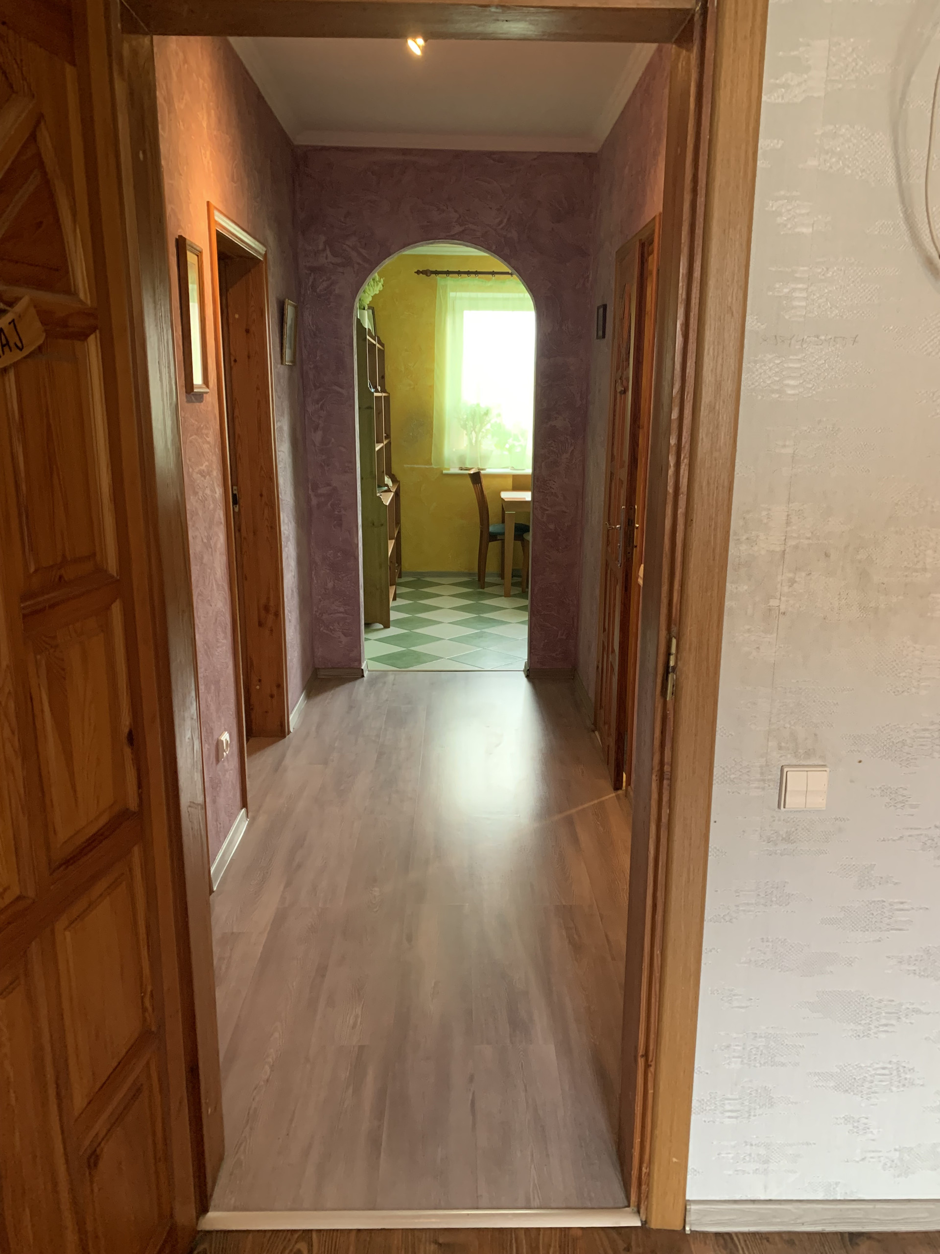 Полы в прихожей, на кухне, в санузле - плитка. В комнатах - ламинат.