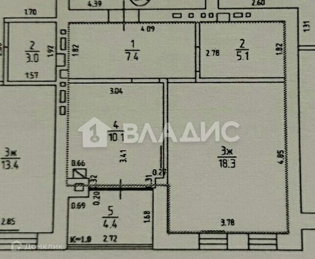 Жилая площадь 36.3 м2