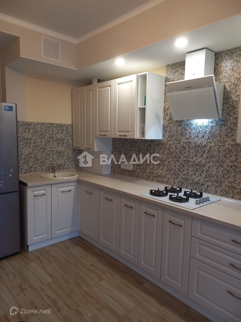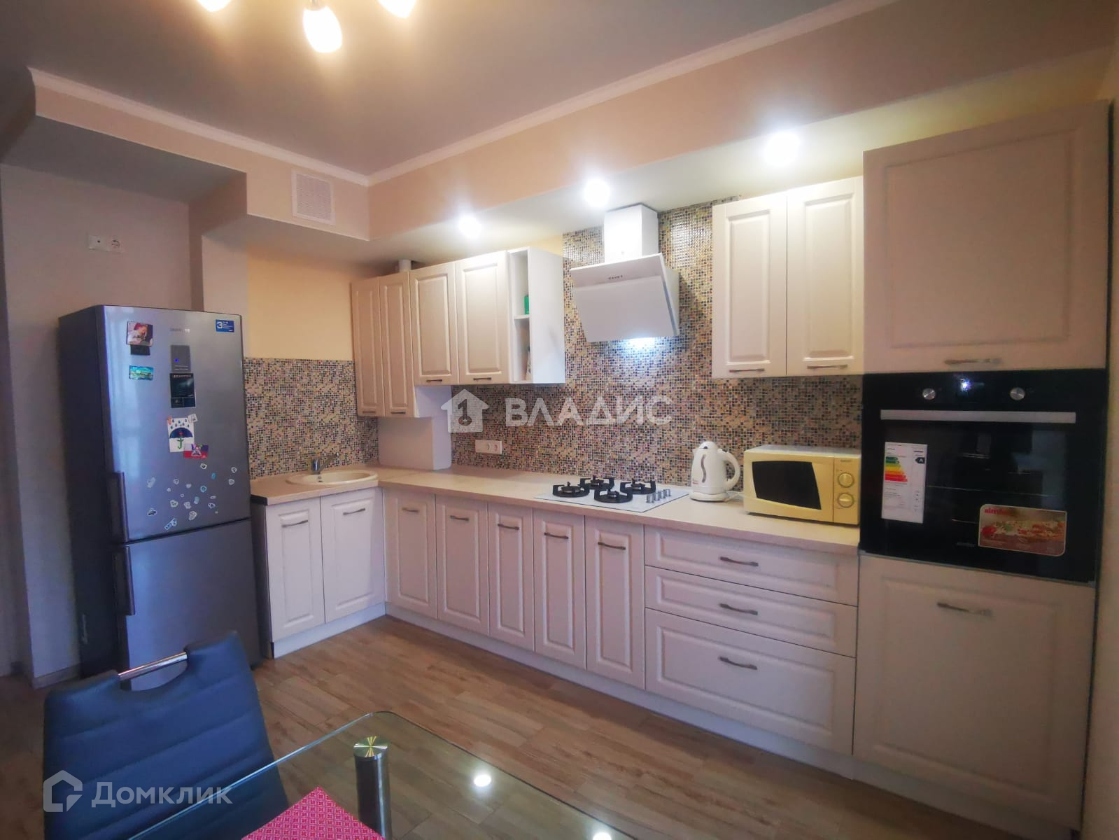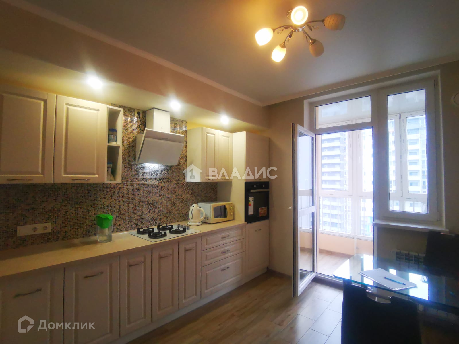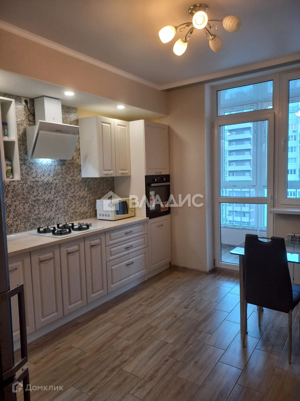 На полу кухни уложена плитка. Стены с качественными обоями. Потолок натяжной матовый. Освещение - люстра, либо точечные светильники над зоной гарнитура. На кухне остается кухонный гарнитур, печь газовая. Фартук выполнен из кафеля. АВТОНОМНОЕ ОТОПЛЕНИЕ экономит до 50% стоимости коммунальных платежей, а также Вы не зависите от отопительного периода и регулируете тепло в квартире самостоятельно. Кухня с выходом на лоджию. Можно сделать объединение и увеличить площадь кухни. На лоджии плитка на полу, стены -штукатурка короед, потолок с панелями ПВХ. Лоджия с панорамным остеклением, вид из балкона и комнаты на соседний двор на Крымский проезд.