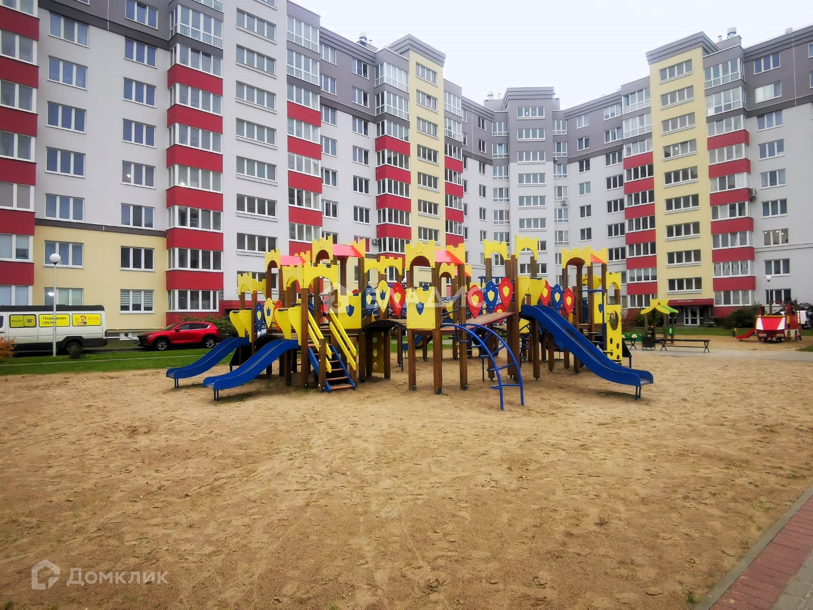 Дом 2018 года постройки с большим внутренним двором со множественными детскими площадками, огороженной футбольной зоной. Во дворе установлены лавочки, высажено озеленение. Для Вашего автомобиля есть возможность бесплатной парковки машины по периметру дома и во дворе, а также возможность аренды или покупки подземного паркинга. На первом этаже по периметру дома коммерческая недвижимость - есть пункты выдачи ОЗОН, Вайлдбериз, детские секции, парикмахерские, адвокатская контора и множество других магазинчиков.