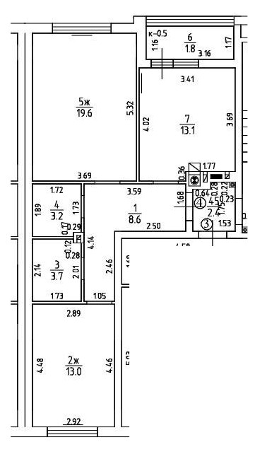 Жилая площадь 32.6 м2