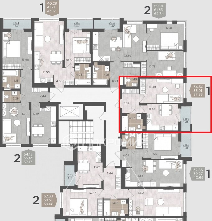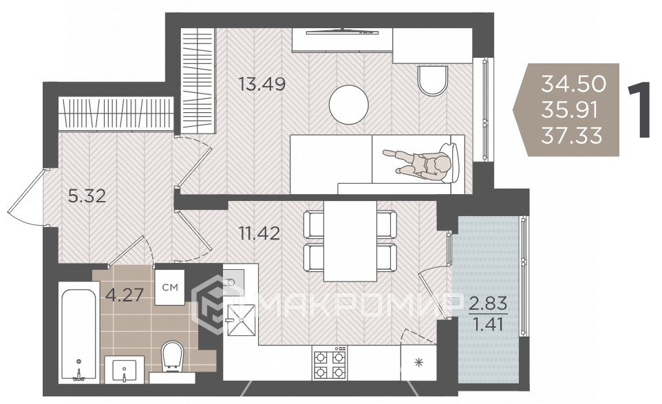 Общая площадь 37.19 м2