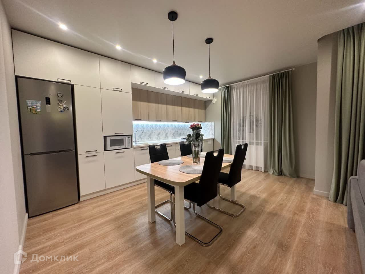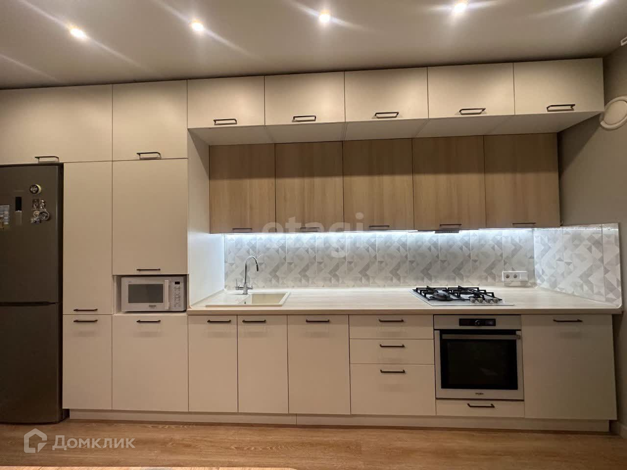 - Бытовая техника: микроволновка, холодильник, газовая плита, духовой шкаф, посудомойка, вытяжка