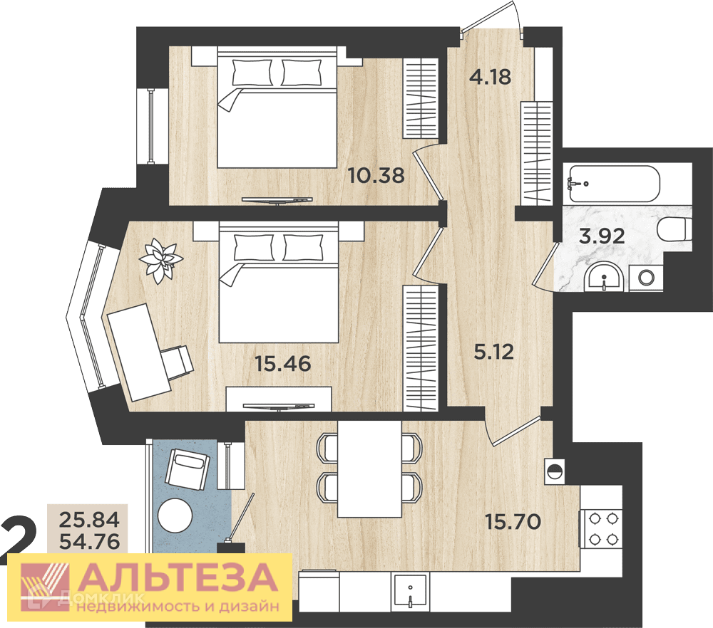 Звоните прямо сейчас ! Жду Вашего звонка! Дом сдан ., Калининград г, Московский, Батальная улица 104, 2 комн., общ. пл. 56.18 кв.м., жил.пл. 25.84 кв.м., комнаты 10.38/15.46, кухня 15.7 кв.м., 16/16 этаж, окна двор, санузел совмещенный, лоджия, без отделки, Номер лота: 4214928