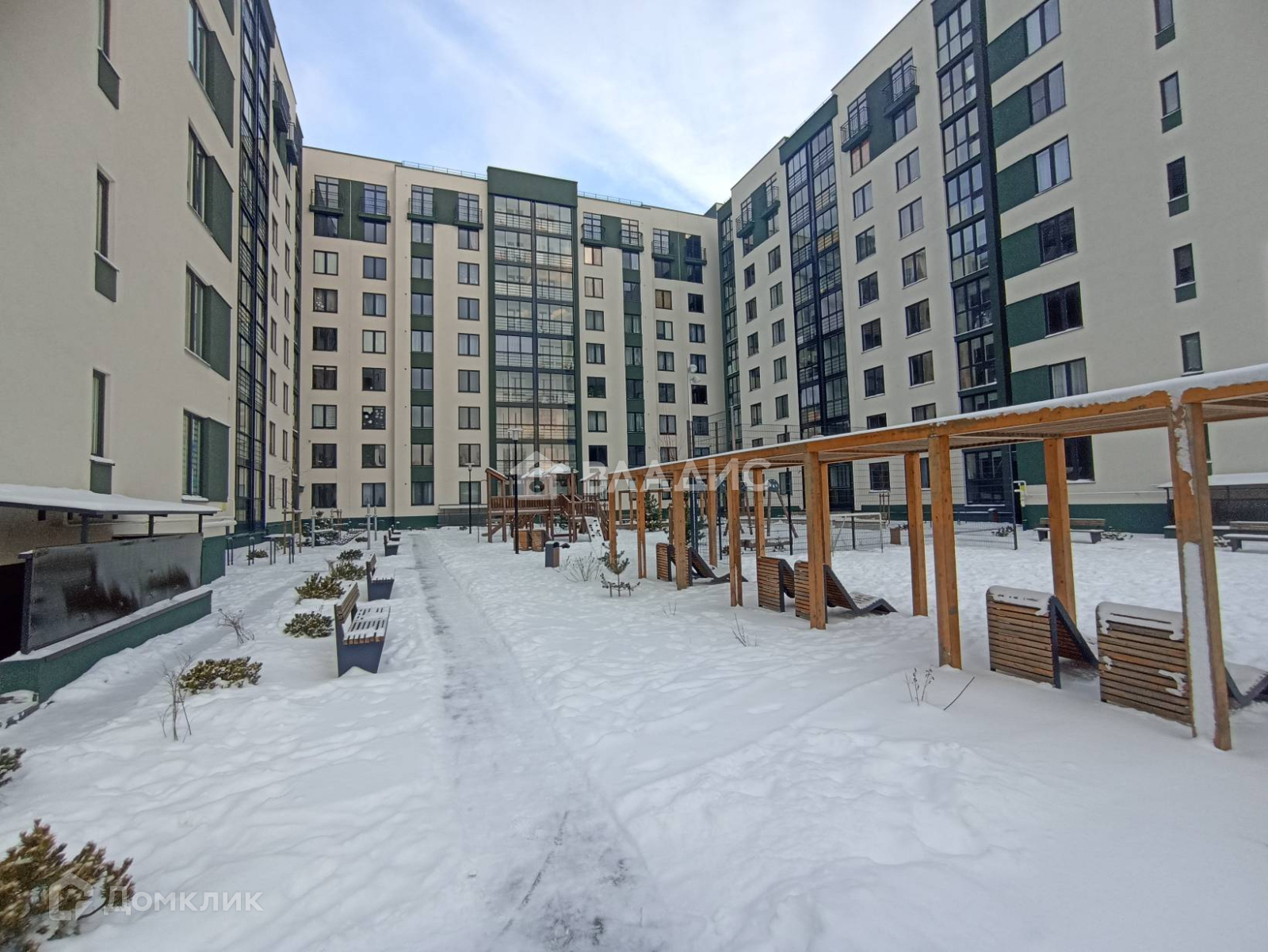 - Окна выходят во двор, из кухни выход на просторную лоджию. Во дворе установлены современные детские игровые площадки;