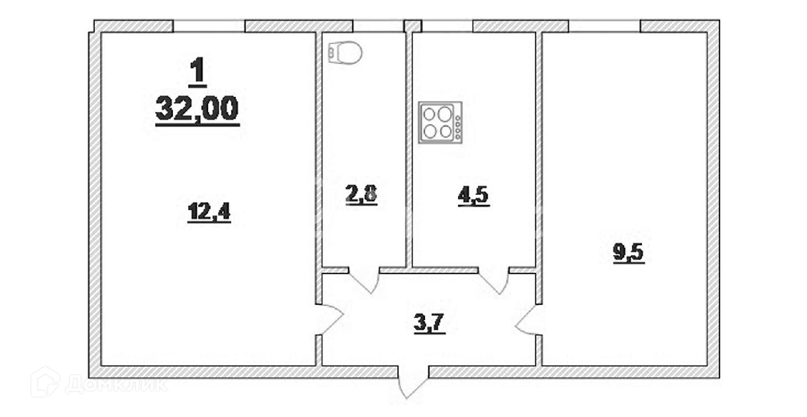 Общая площадь 32 м2