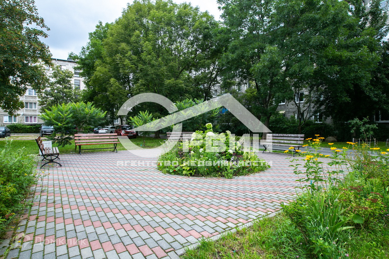 Зеленый уютный двор с красивыми клумбами, деревьями, местами отдыха, новыми тротуарами и парковкой. Квартира на первом этаже, что удобно для людей в возрасте и семей с маленькими детьми. Балкона нет, но в наличии подвал для хранения всего необходимого прямо под квартирой.