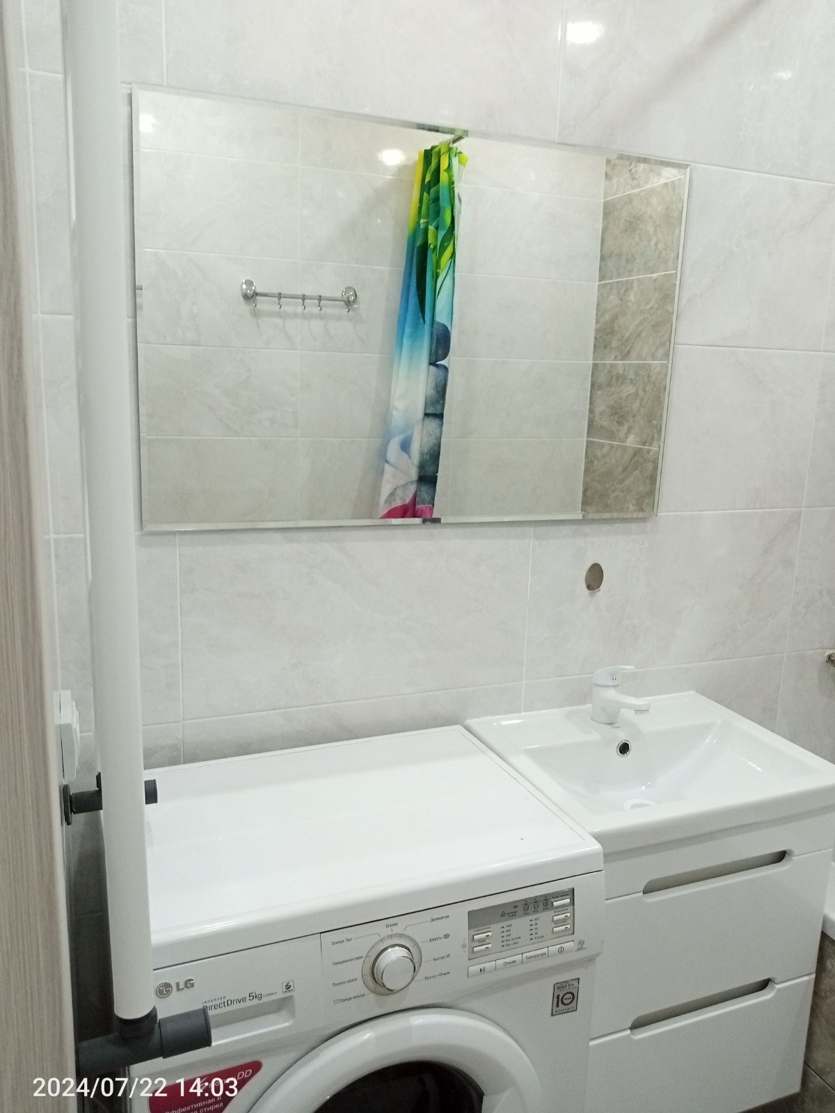 Санузел раздельный в кафельный плитке.