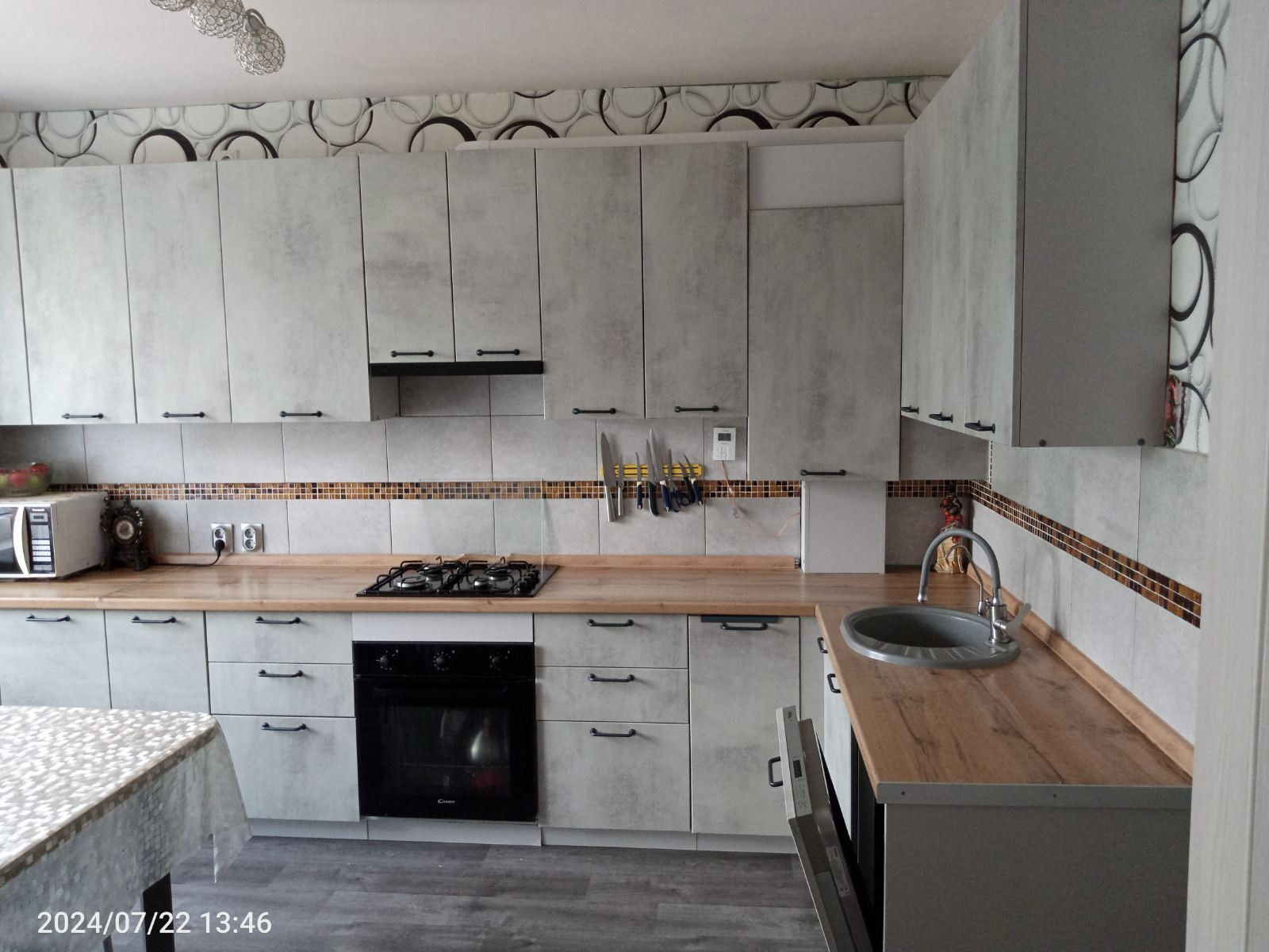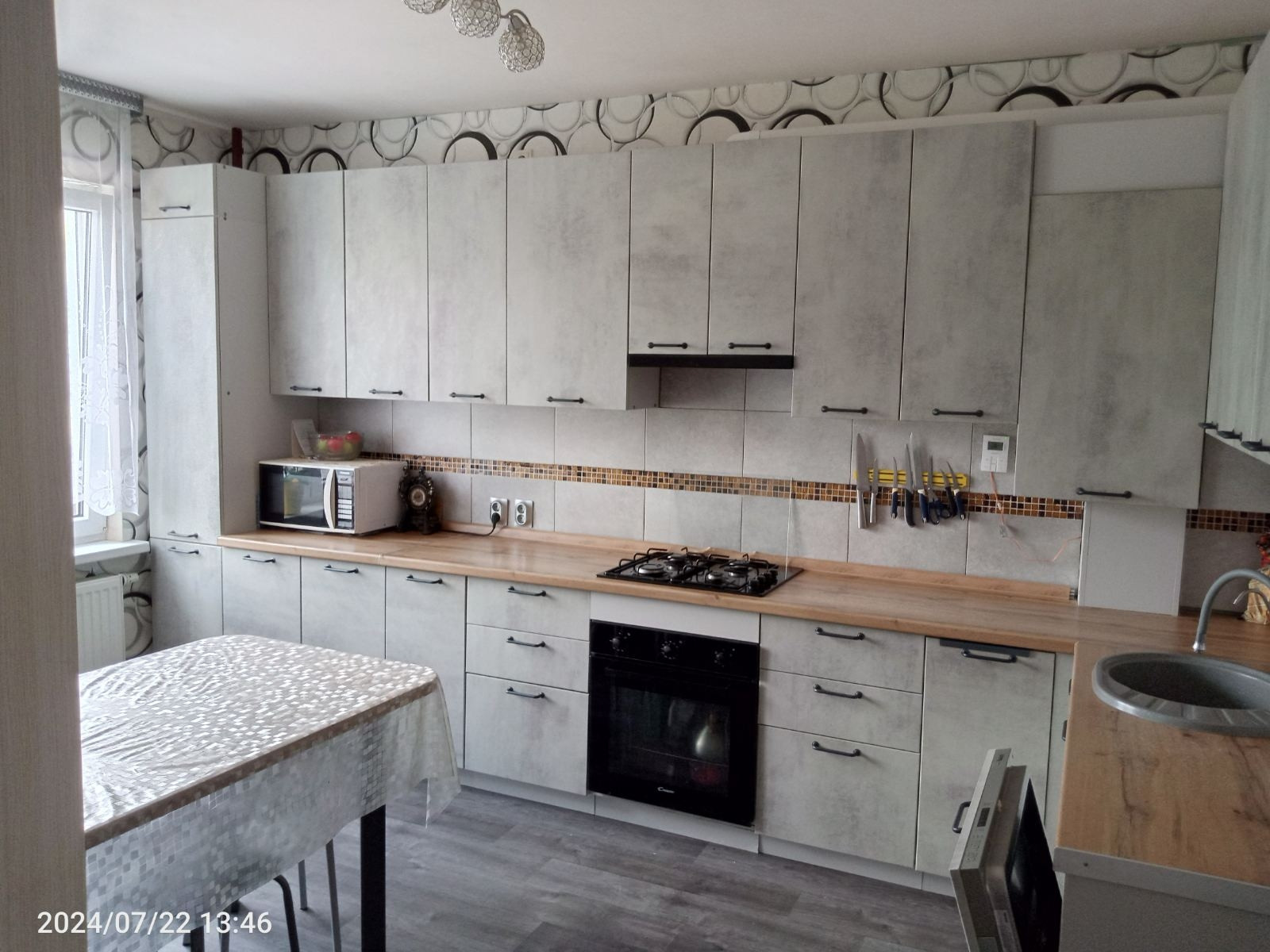 Встроенная кухня с техникой остаётся.
