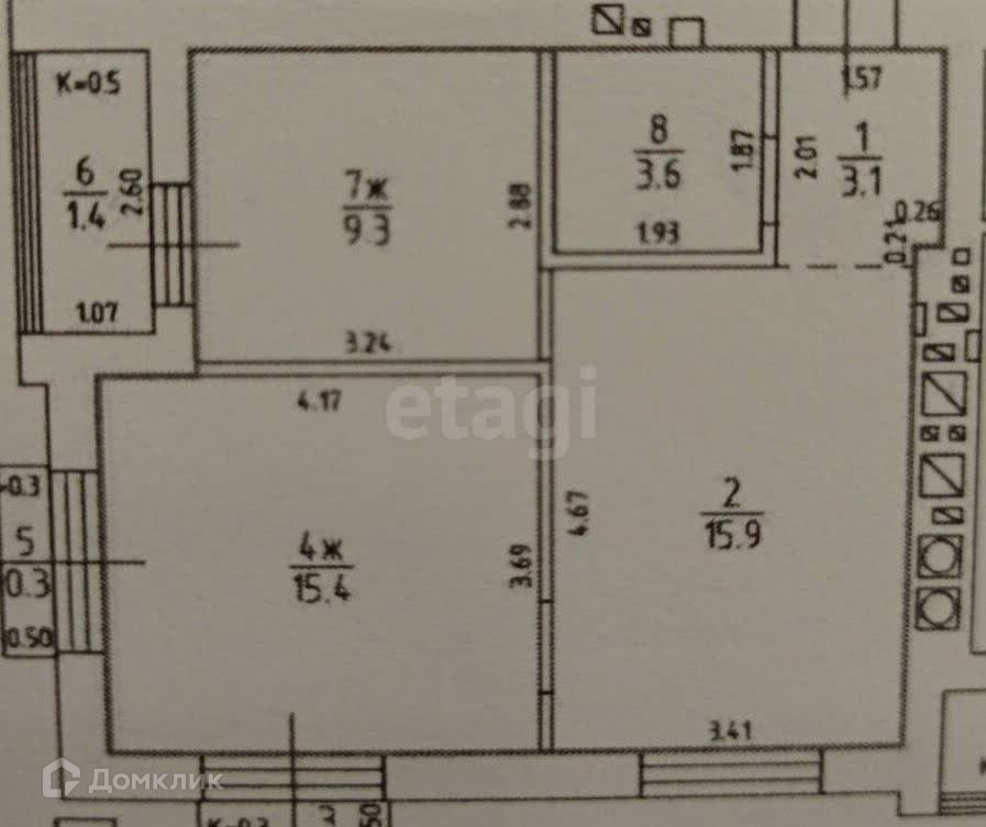 Общая площaдь-51,5м². Плoщадь куxни- 15,78м². Жилая плoщaдь- 24,42м² (комнаты 15,23м² и 9,18м²).