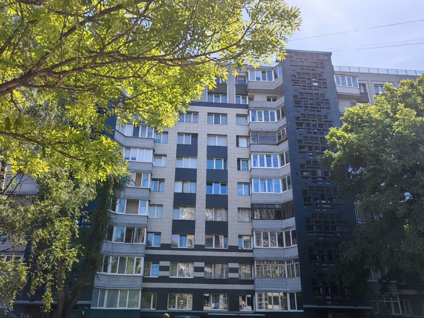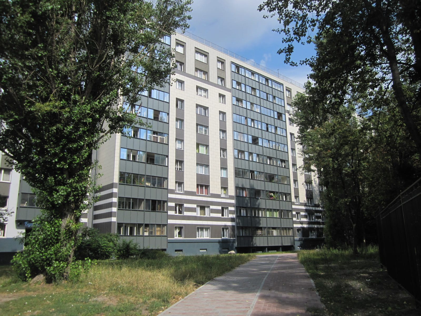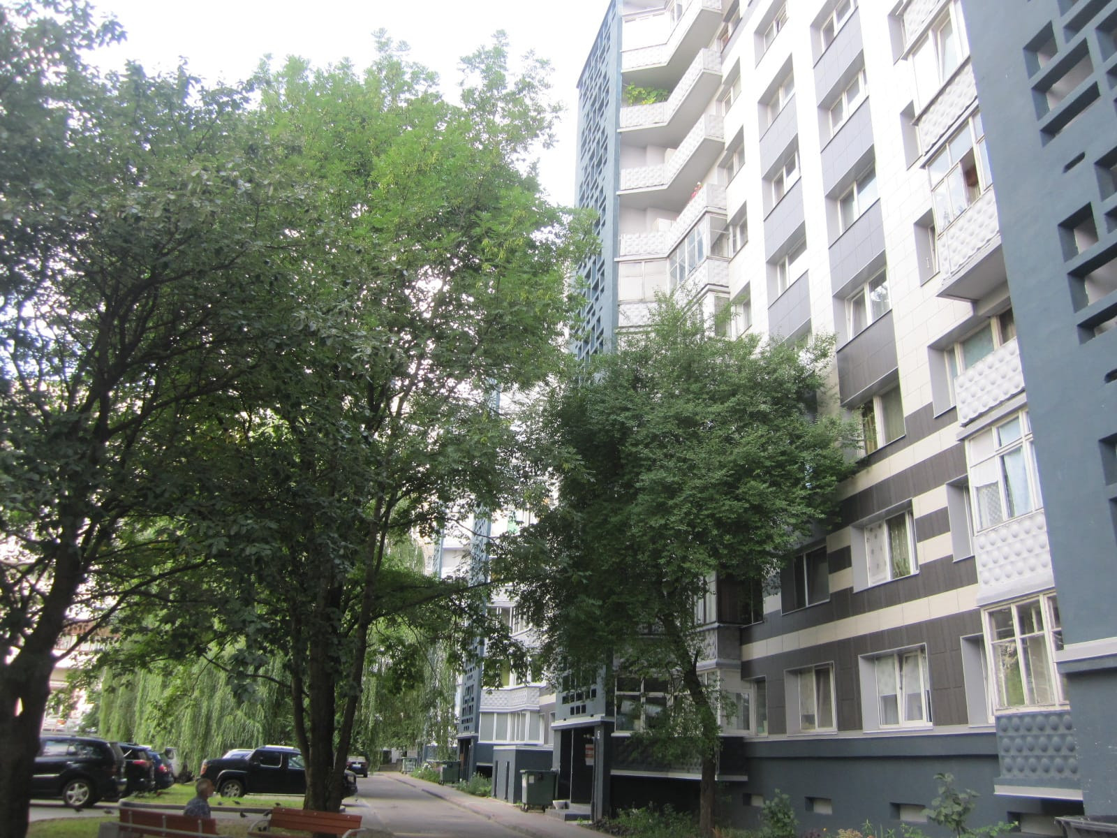 Во дворе детская площадка. Вокруг много зелени, прогулочные и велосипедные дорожки. Парковка открытая во дворе.