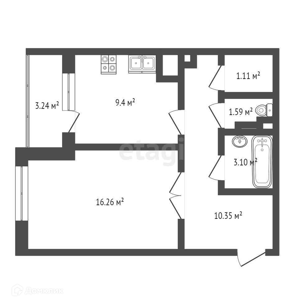 Общая площадь 43.3 м2