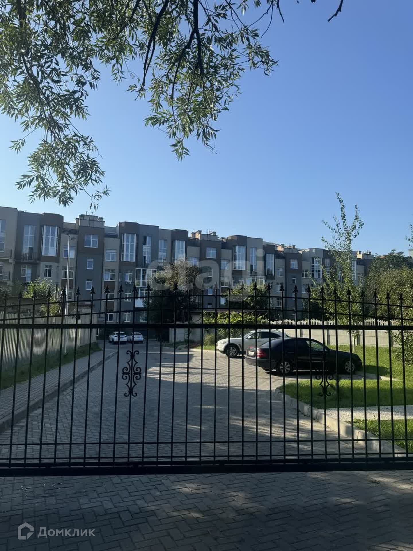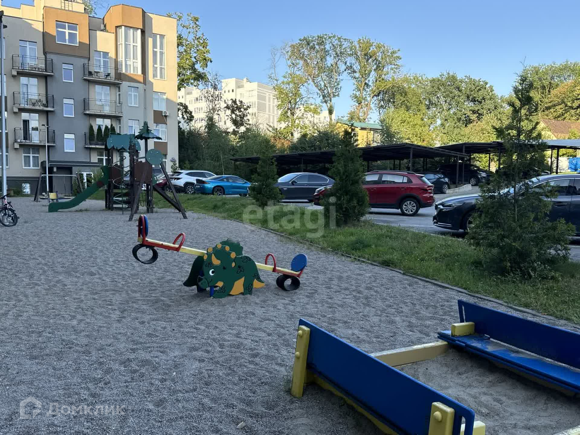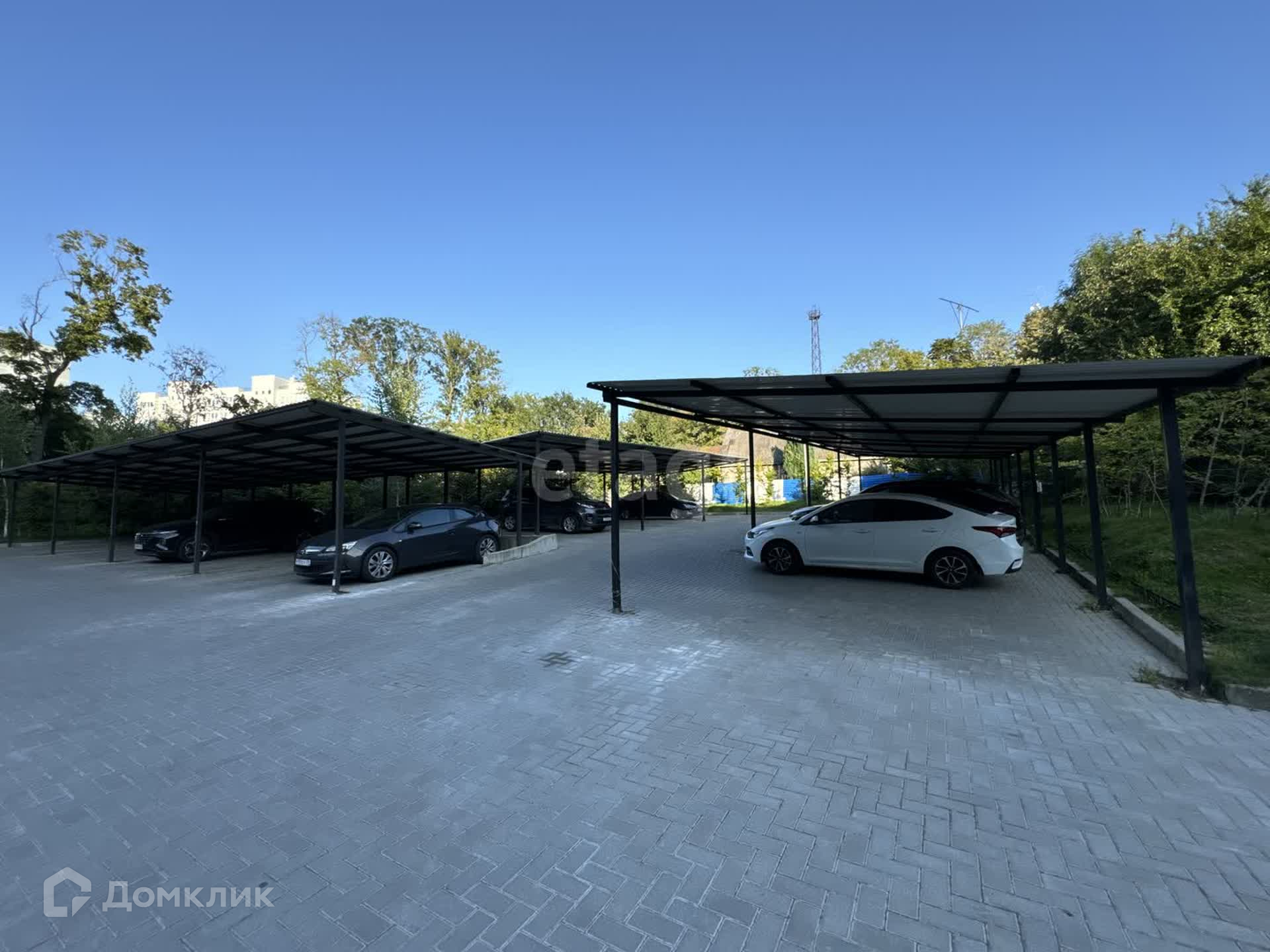 На огороженной территория дома большой наземный паркинг, крытая парковка, детская площадка.