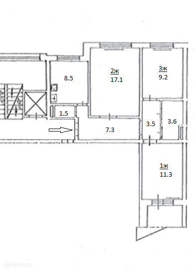 3 изолированные комнаты 17,1 кв.м, 11,3 кв.м и 9,2 кв.м., большой балкон с видом на город и парк. Кухня 8,5 кв.м светлая и функциональная, есть кладовка (в данный момент используется к прачечная). Сан.узел совмещенный и просторный. В квартире хороший ремонт, мебель и техника остается частично. В доме установлен новый лифт, подъезд чистый, центральное отопление, газовая варочная плита.