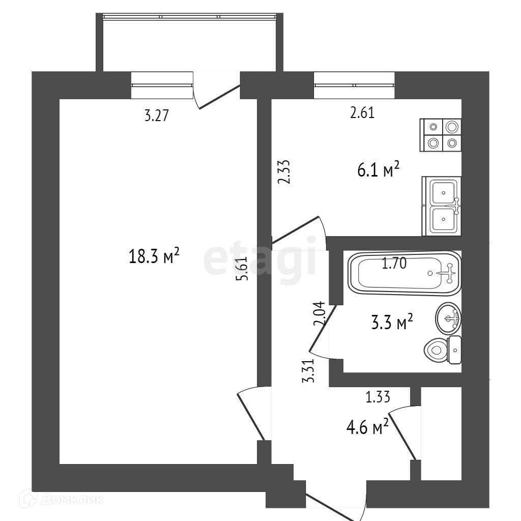 1-комнатная квартира, 33.4 м2, этаж 5 / 5, на продажу в Калининграде, Воздушная улица, 27