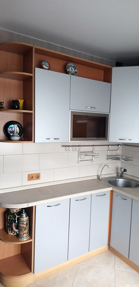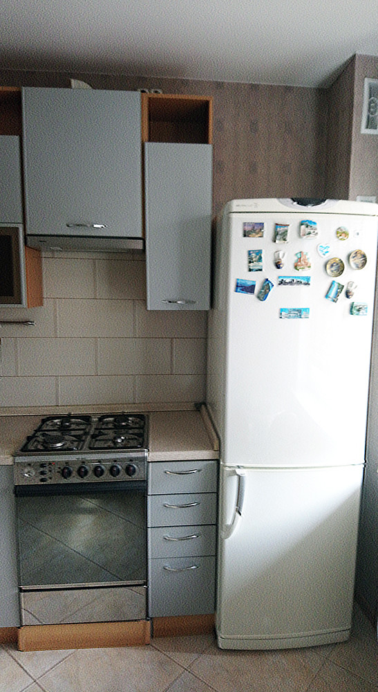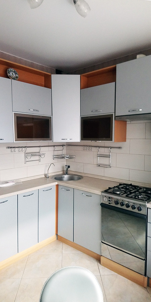 Кухня со всей необходимой мебелью и техникой.