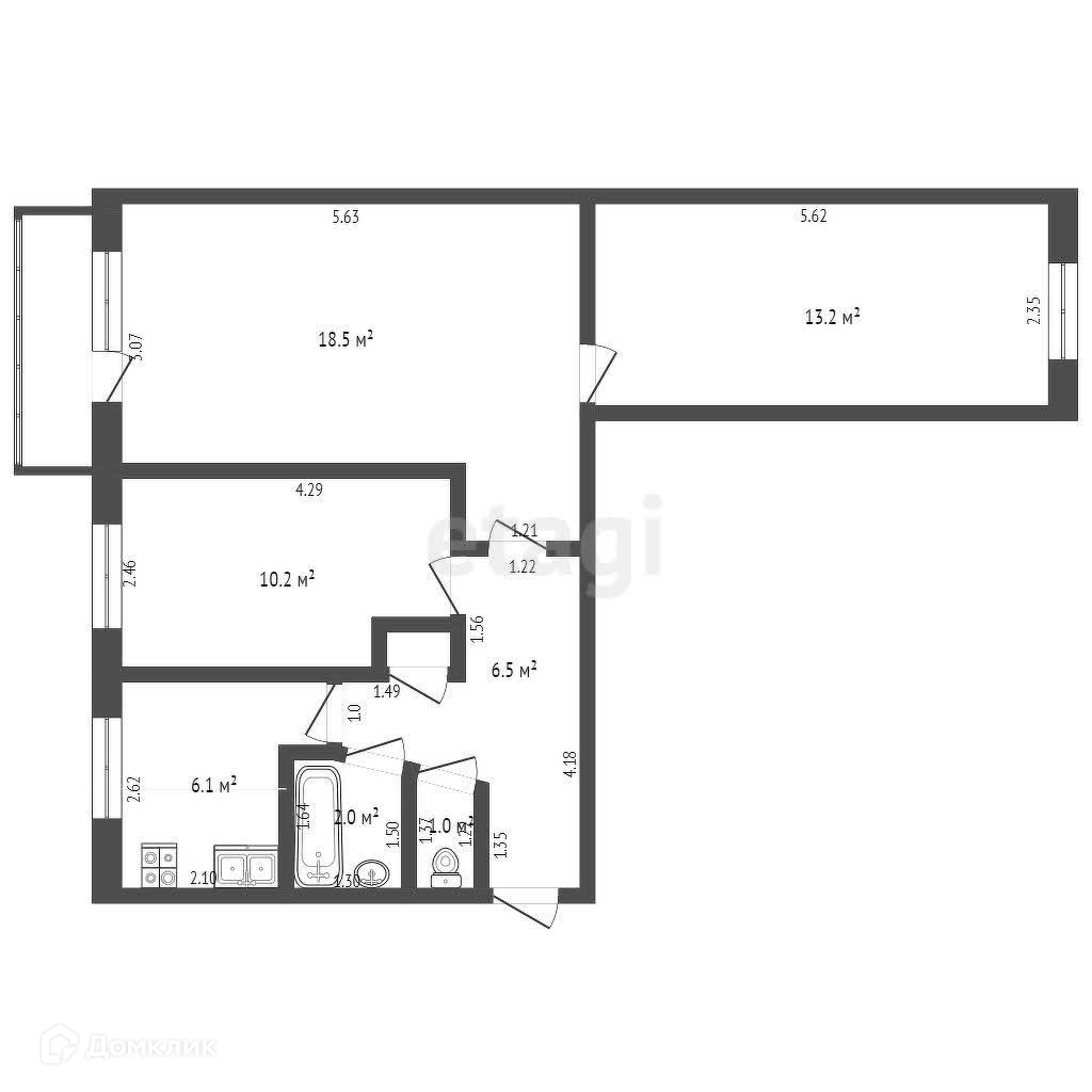 Уютная кухня площадью 6.1 кв.м. позволяет удобно разместить всю необходимую технику, а три комнаты дают возможность использовать каждую комнату на ваше усмотрение.