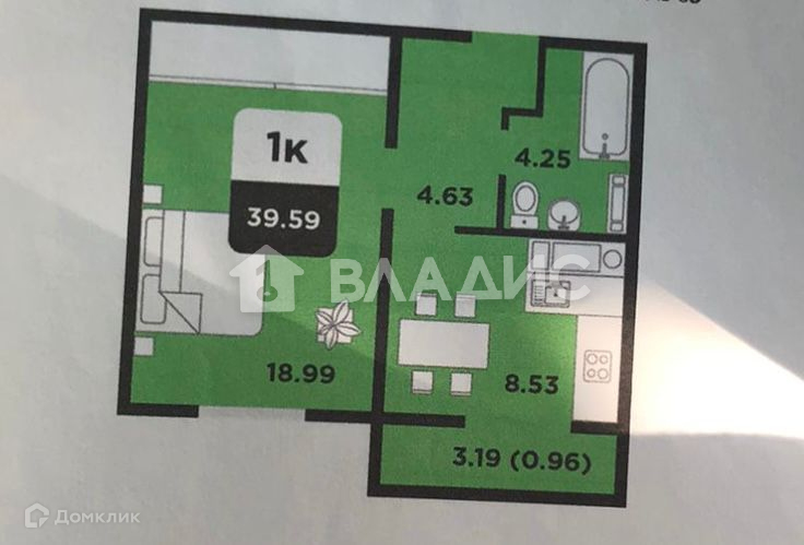 Жилая площадь 19 м2