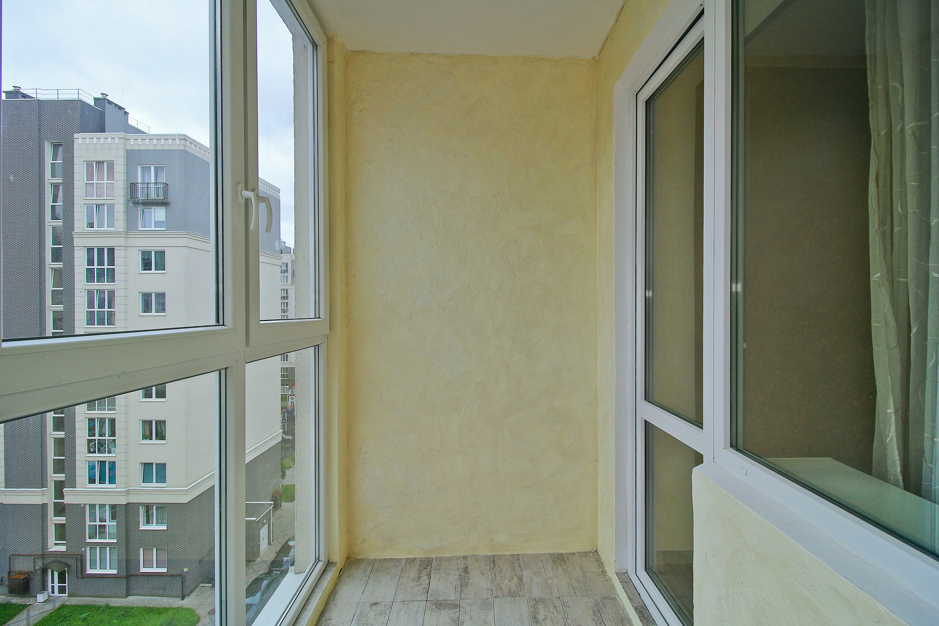     В квартире две лоджии с панорамным остеклением. Стены на лоджиях покрыты декоративной штукатуркой, на полу керамическая плитка.