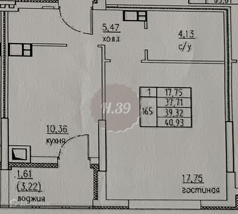 Общая площадь 41 м2