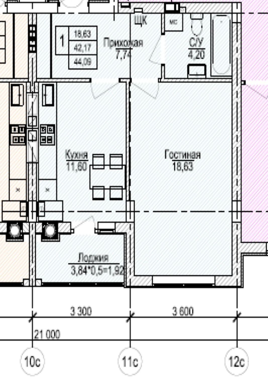 Общая площадь 42.8 м2