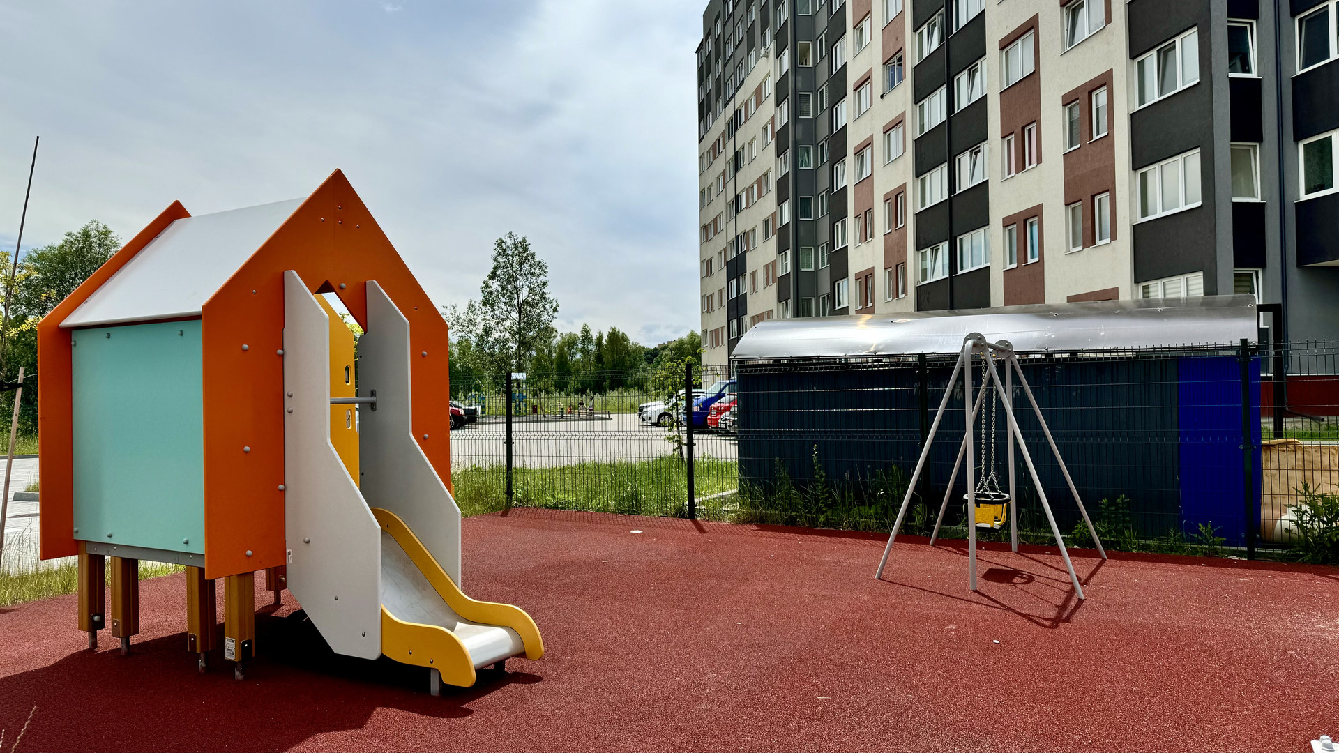 На территории: детские игровые площадки спортивная площадка с уличными тренажёрами и спортгородком площадки для отдыха взрослых и хозяйственных нужд уличное освещение и скамейки для отдыха.