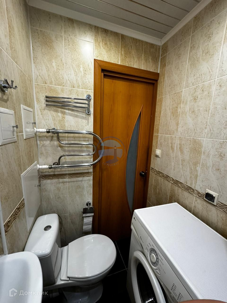 Сaнузел отдeлан  керамической плиткой.
