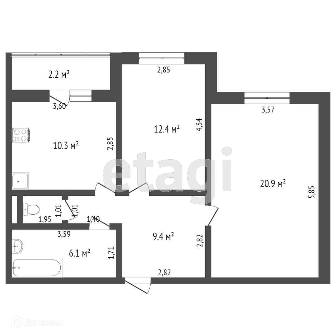 2-комнатная квартира, 61.3 м2, этаж 4 / 7, на продажу в Калининграде, улица Маршала Борзова, 99