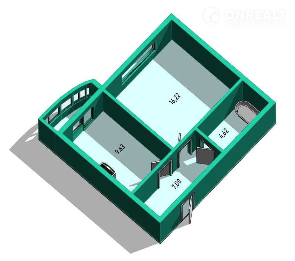 Общая площадь квартиры составляет 40 кв.м. с учетом площади лоджии. Кухня-столовая 10 кв.м. с выходом на лоджию 2,5 кв.м., жилая комната 16,2 кв.м., санузел 4,6 кв.м., прихожая 7,1 кв.м. Квартира для уютного и комфортного проживания. Расположена на 1 высоком этаже. Юго-западная сторона света.