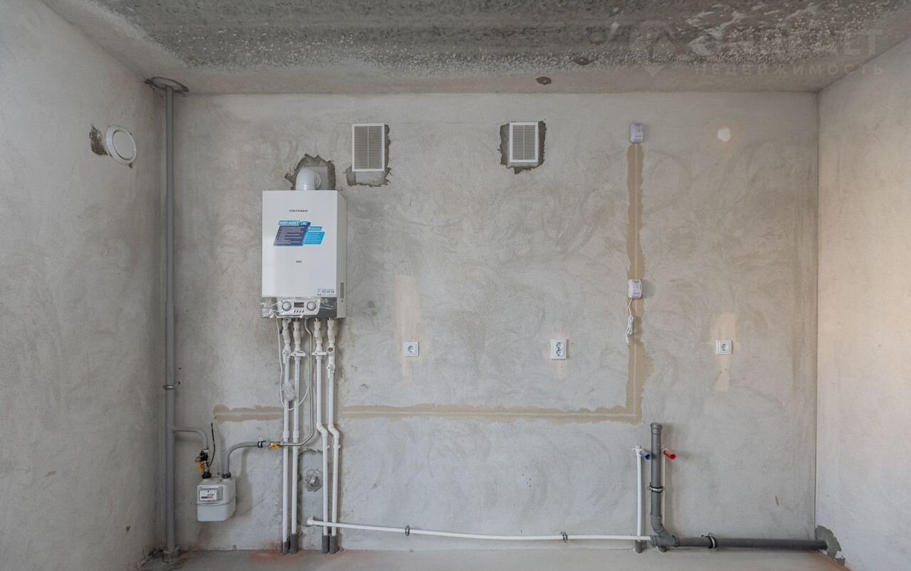 - Кухня: 12 м² с газовым двухконтурным котлом; есть возможность объединить