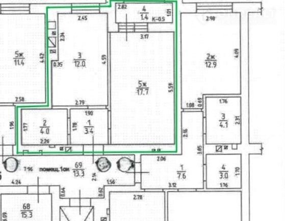 Жилая площадь 17.7 м2