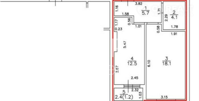 Общая площадь 40.4 м2