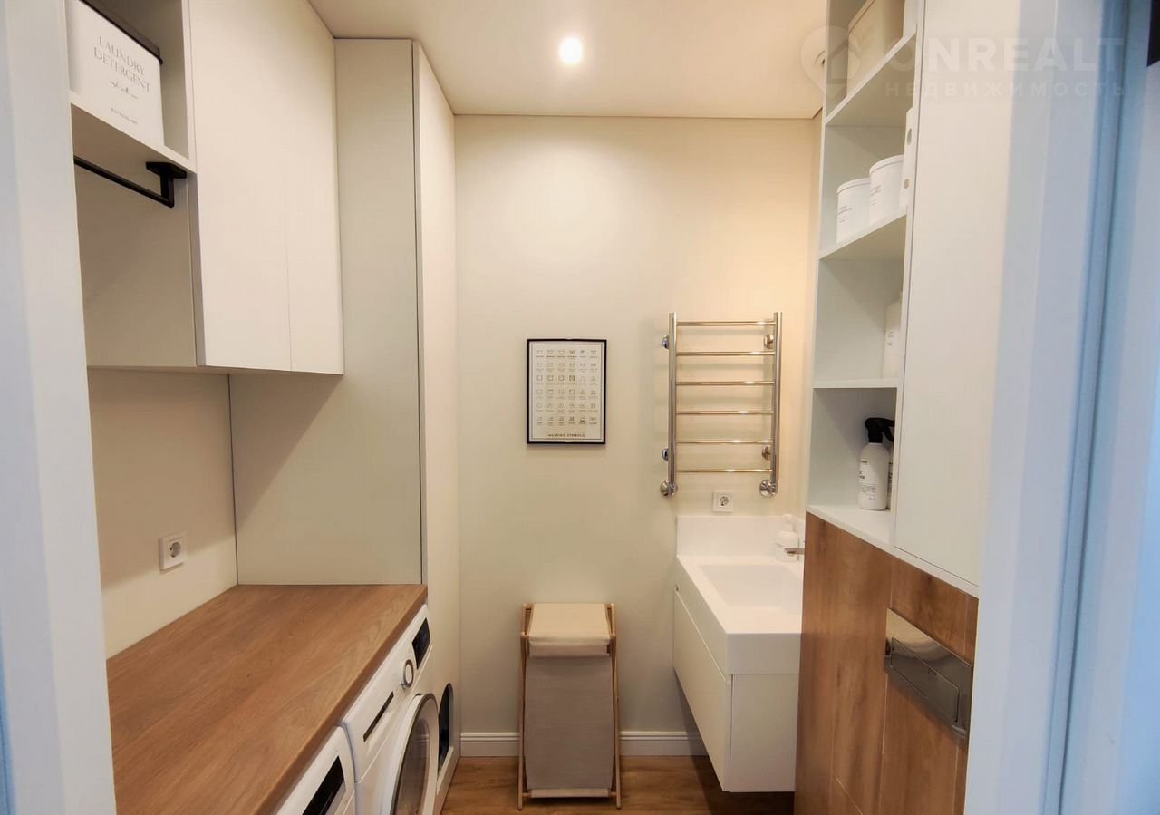 Два санузла,во втором оборудованна постирочная комната со стиральной и сушильной машиной Воsсh,так же в санузлах теплый пол.
