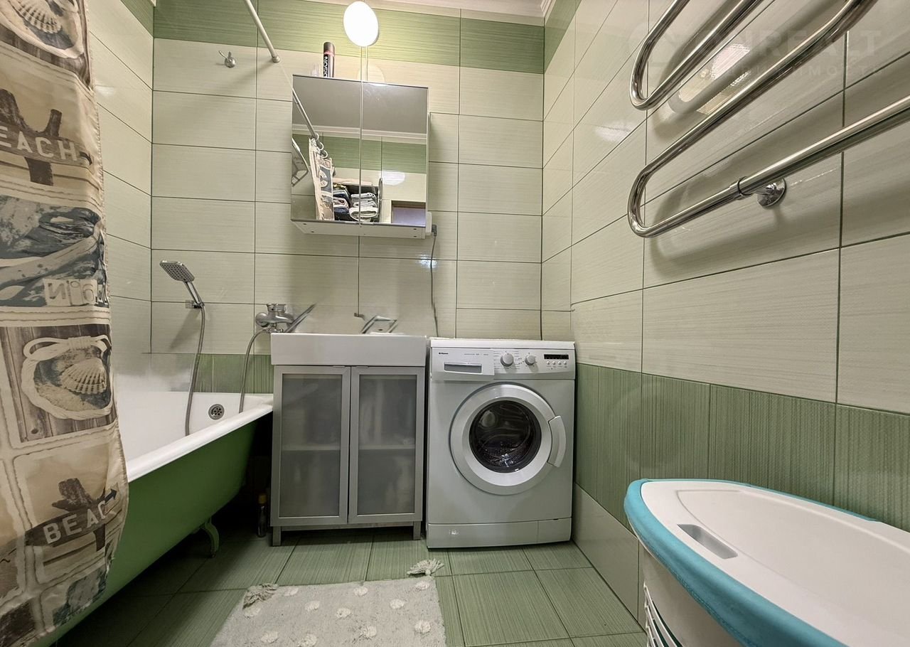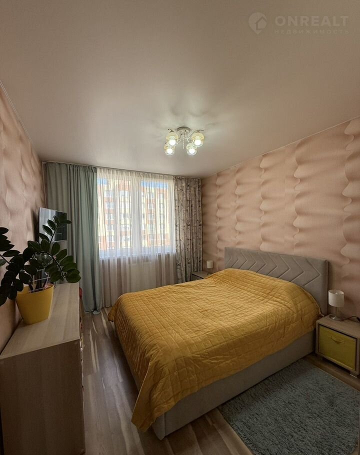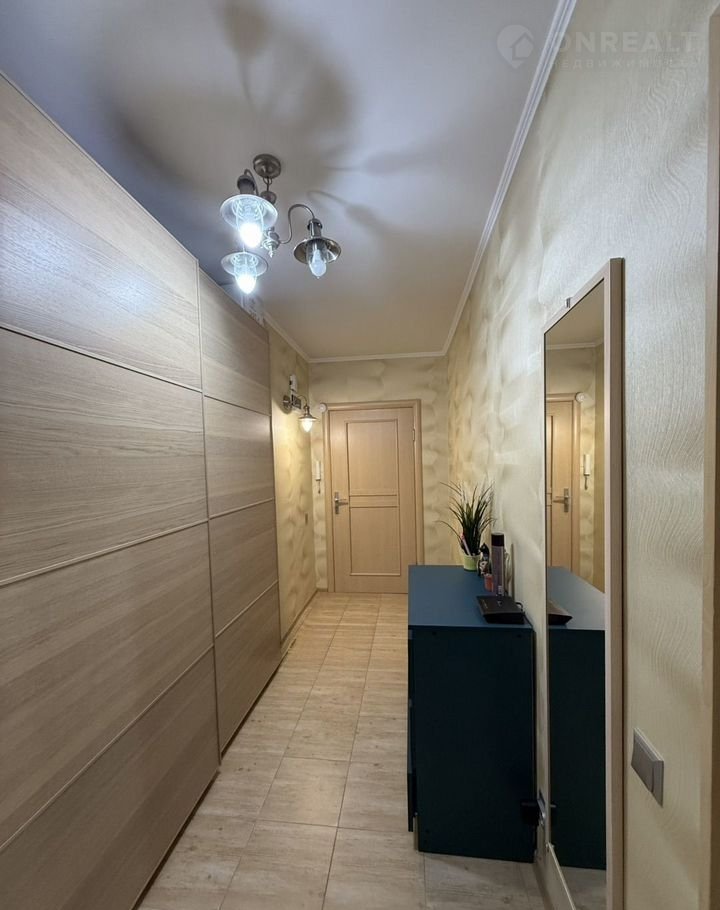Современный ремонт выполнен из качественных материалов, подчеркивая уют и комфорт помещения. Для удобного хранения вещей предусмотрены просторные встроенные шкаф-купе.