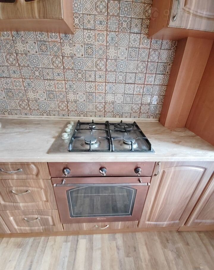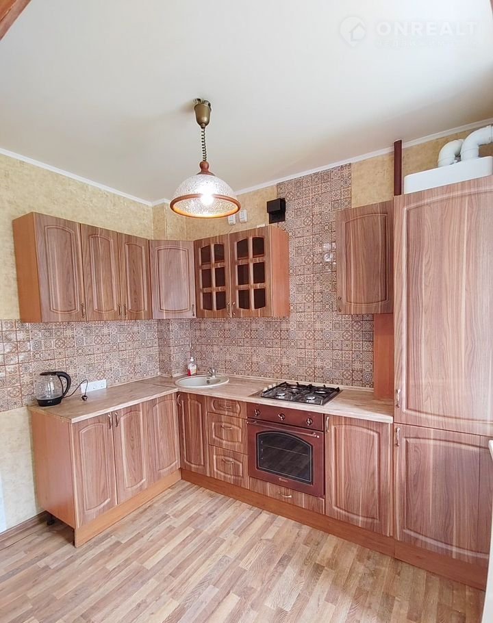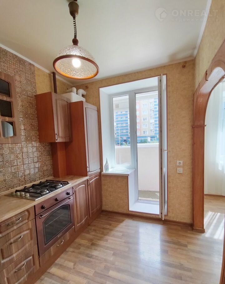Кухня с выходом на просторную лоджию оборудованна кухонным гарнитуром, газовой плитой и духовым шкафом.