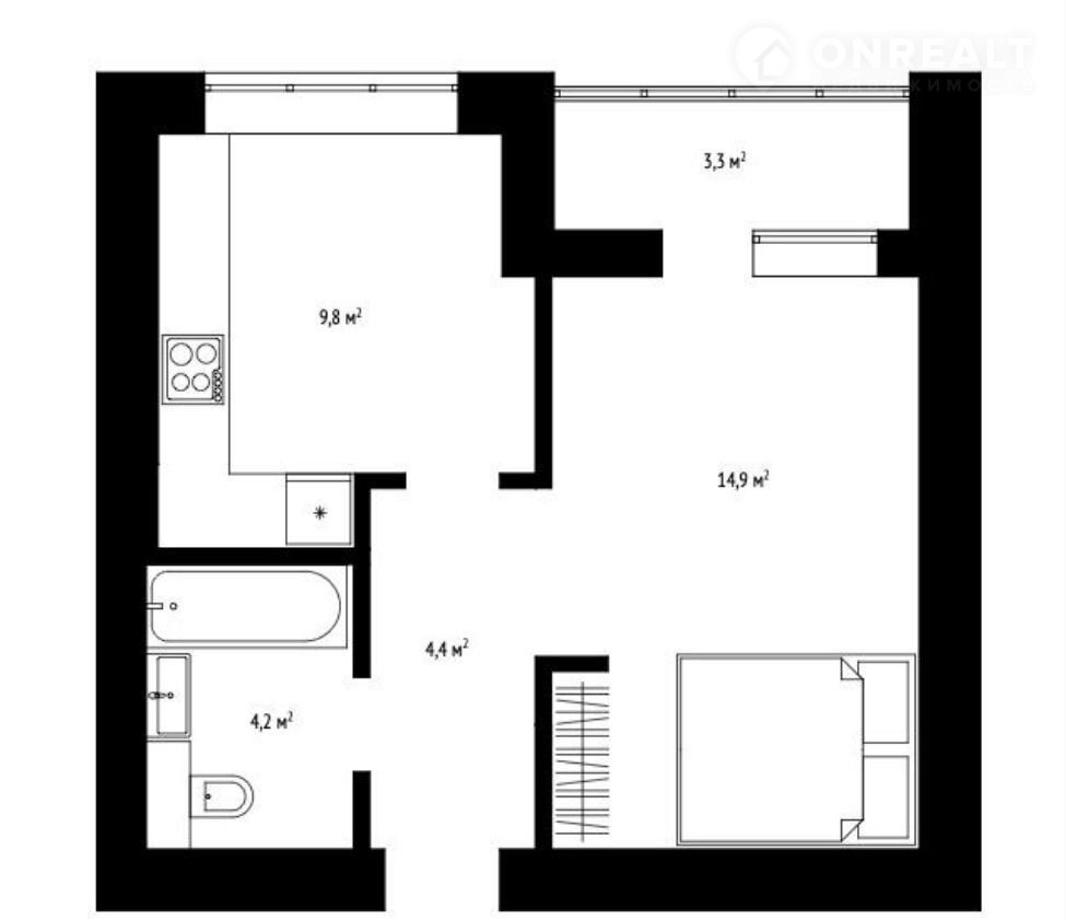 Жилая площадь 14.9 м2