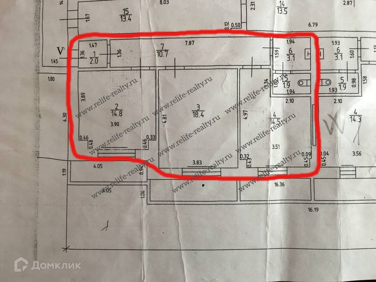 Общая площадь 65.4 м2