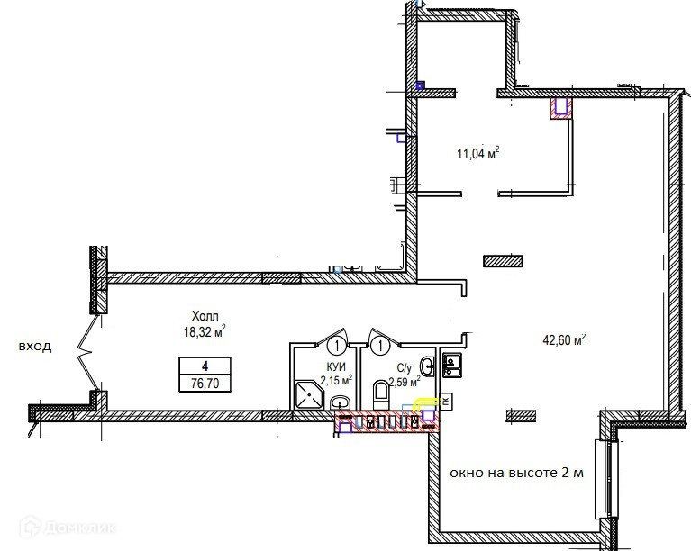 Окна в холле. В помещении на высоте 2 метров - два маленьких окна.