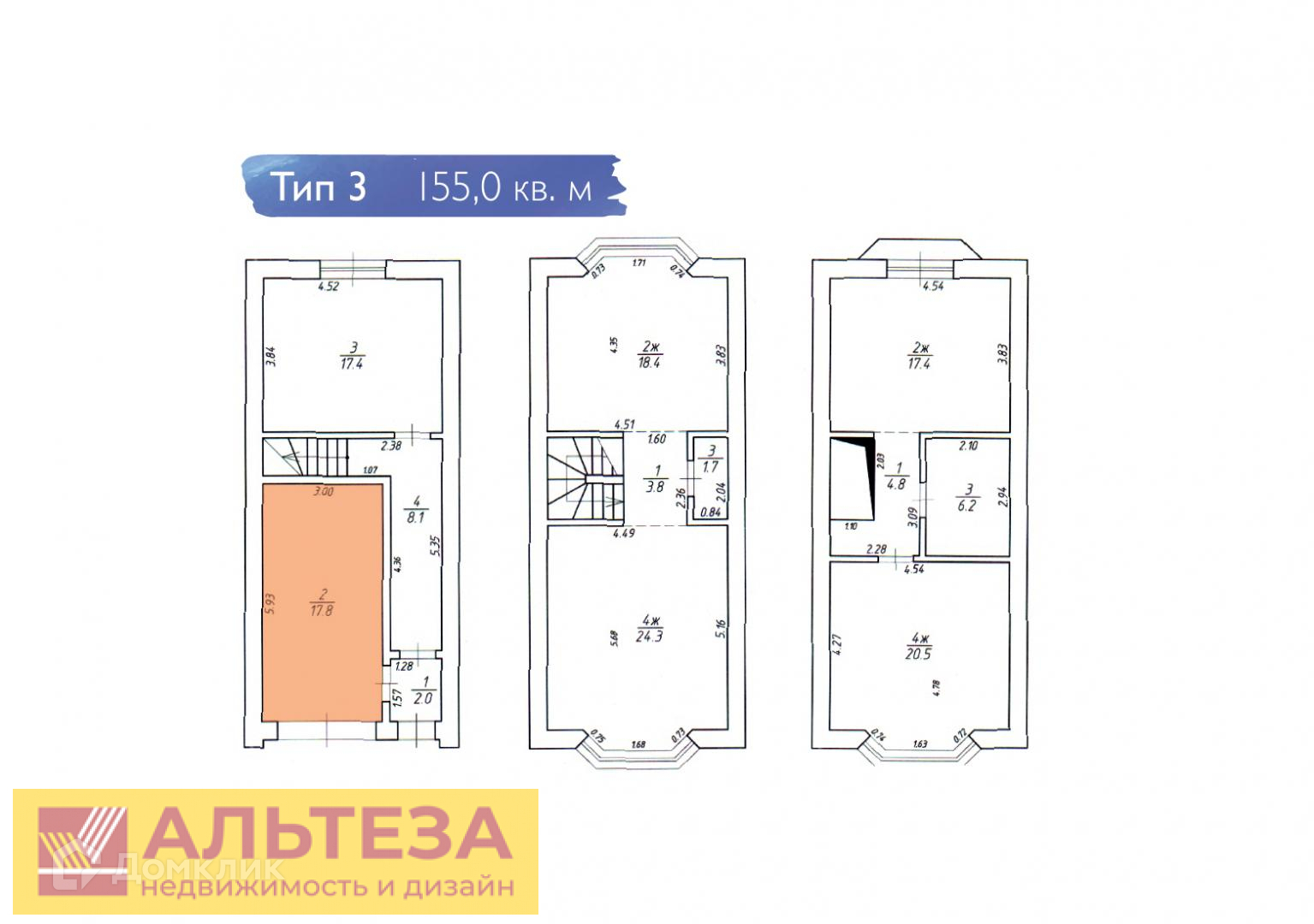 , Калининград г, Московский, Поморская улица 7Е, продается таунхаус, 4комнат(а) в, 1.5 соток, общ. пл. дома 155 кв.м., 2 санузла, без отделки, Номер лота: 4238176