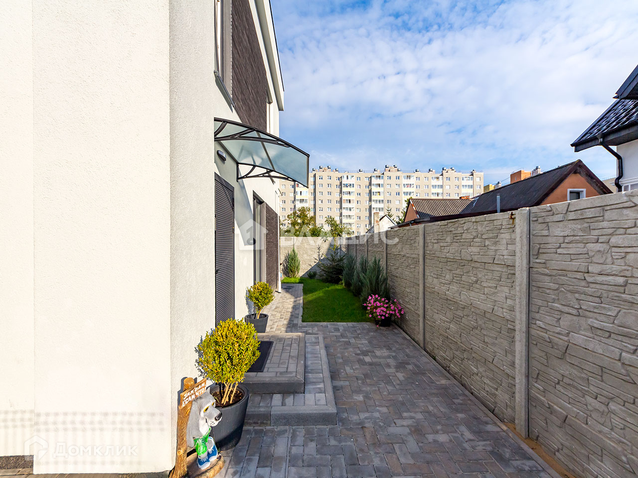 Участок в собственности, территория ухоженная - газон, высажены туи, карликовые формы слив и яблоня, идеальный зелёный газон и аккуратное мощение тротуарной плиткой.
