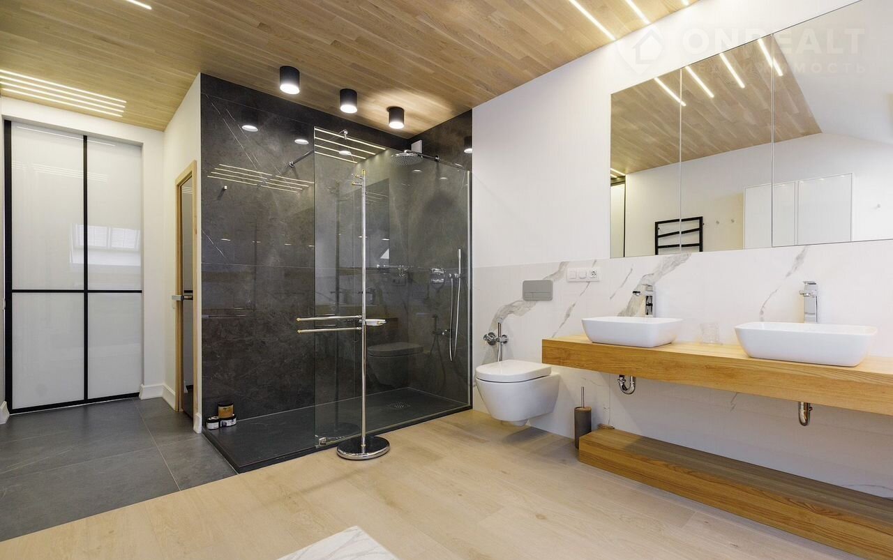 - Мастер-спальня с гардеробной, большим санузлом из натурального дерева и сауной, отделанной гималайской солью